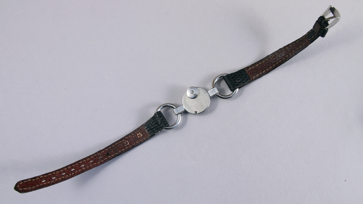 JAEGER-LECOULTRE. MONTRE-BRACELET de dame en acier avec remontoir sous le boîtier, cadran argenté, mouvement mécanique.