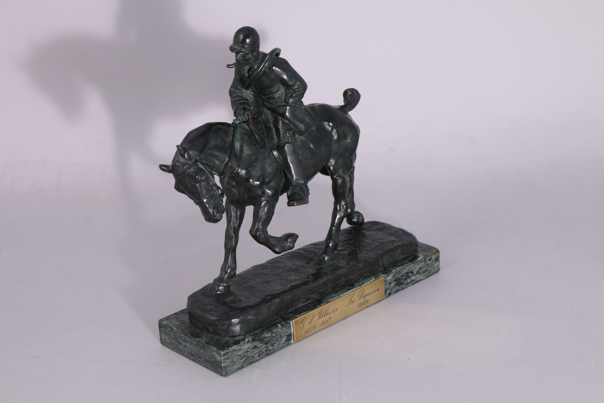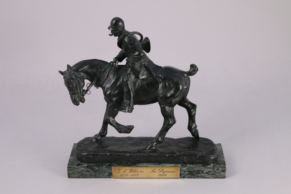 Bronze à patine verte. Signé "G. d'Illiers" sur la terrasse.