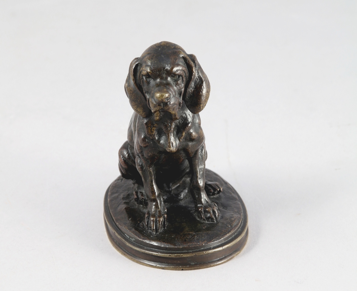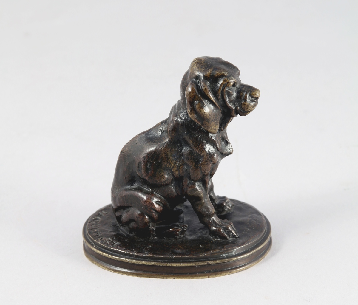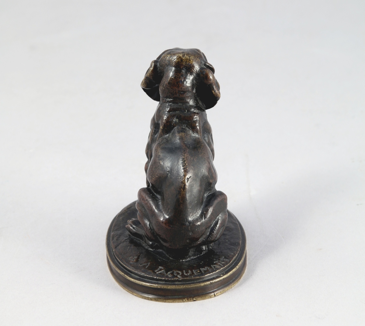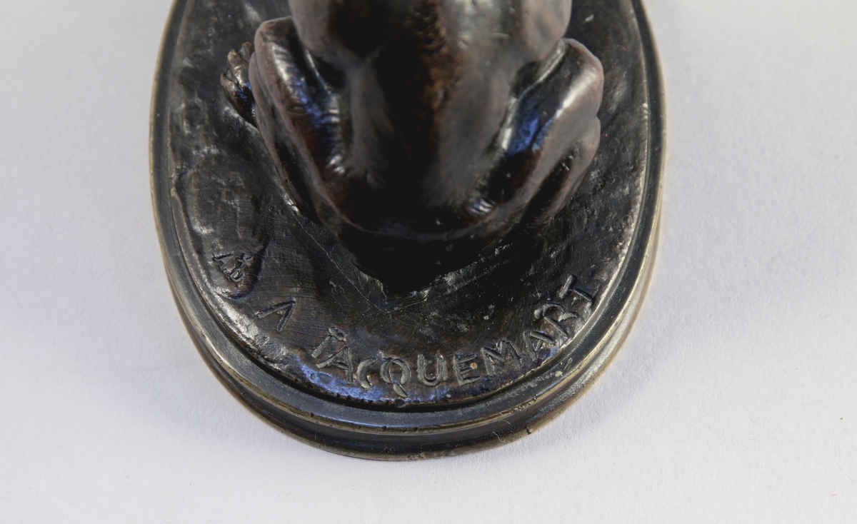 Bronze à patine brune. Signé sur la terrasse "A. JACQUEMART" et cachet du fondeur A. Delafontaine.