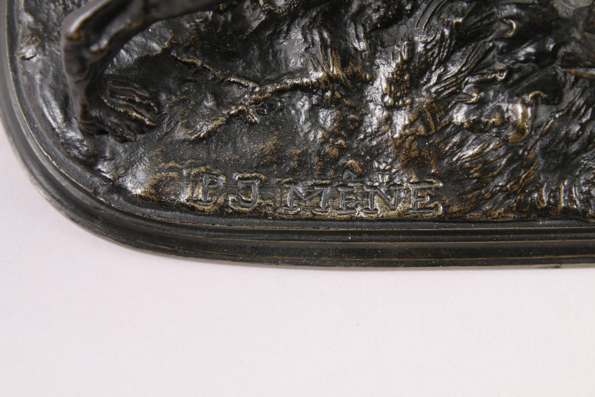 Bronze à belle patine brune aux reflets dorés. Signé "P.J. MÊNE" sur la terrasse.