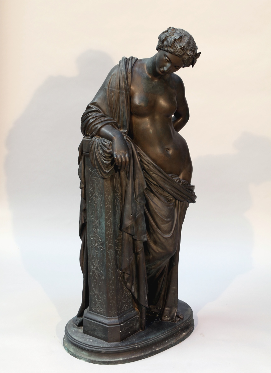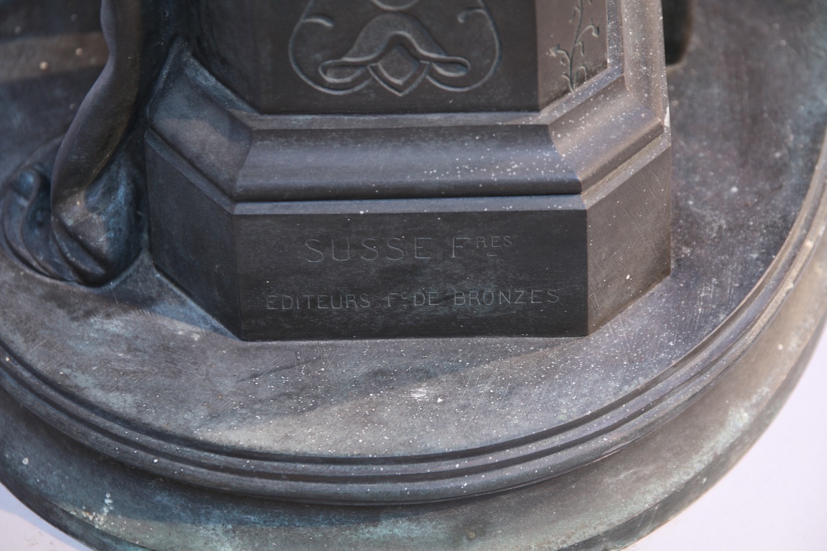 Bronze signé sur la base de la colonne "E. LEQUESNE", cachet du fondeur "SUSSE Frères, éditeur français de bronzes". Titré sur la base "RECONNAISSANCE".