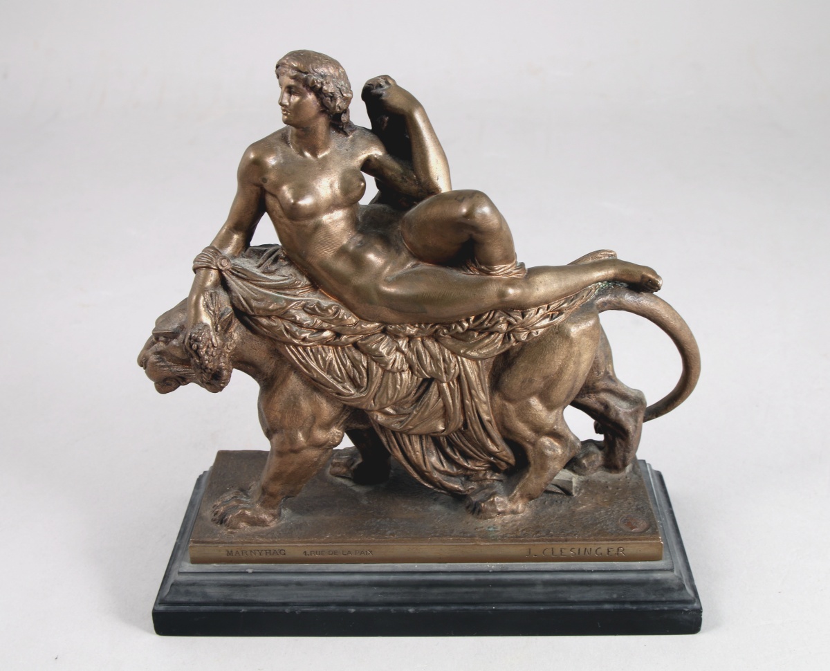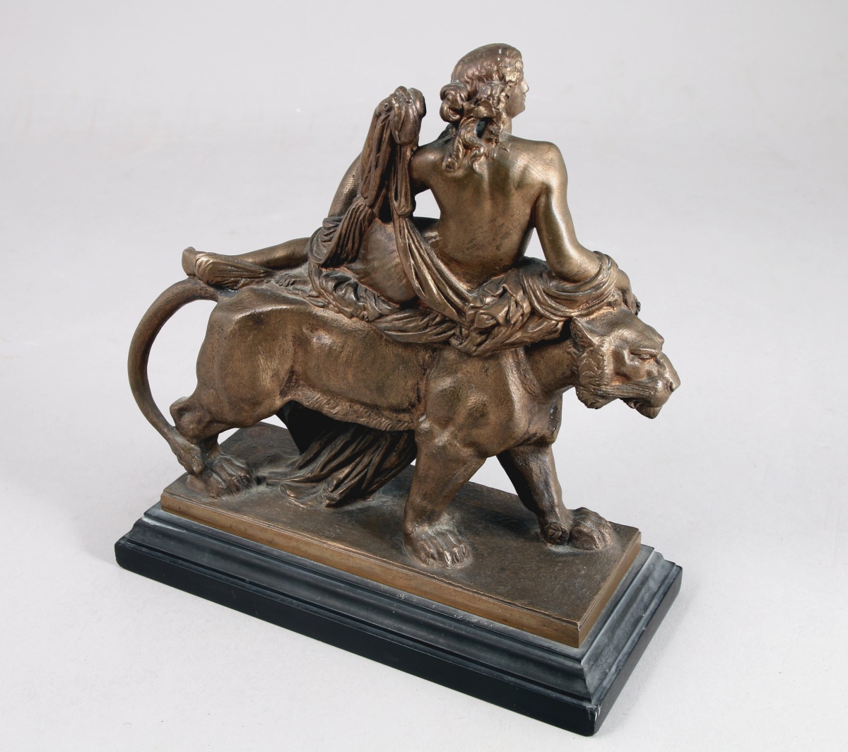 Ce bronze d'Auguste Clésinger présentant Ariane sur le dos d'un tigre a été édité d'après le Triomphe d'Ariane, marbre présenté au Salon de 1868 et aujourd'hui conservé au Musée des Beaux Arts de Besançon. Deux autres exemplaires en bronze sont connus dans les collections des musées: l'un, daté de 1866, au musée Chéret de Nice, l'autre issue d'une fonte Barbedienne, au musée Camille Claudel de Nogent-sur-Seine, dépôt du Musée des Arts décoratifs.