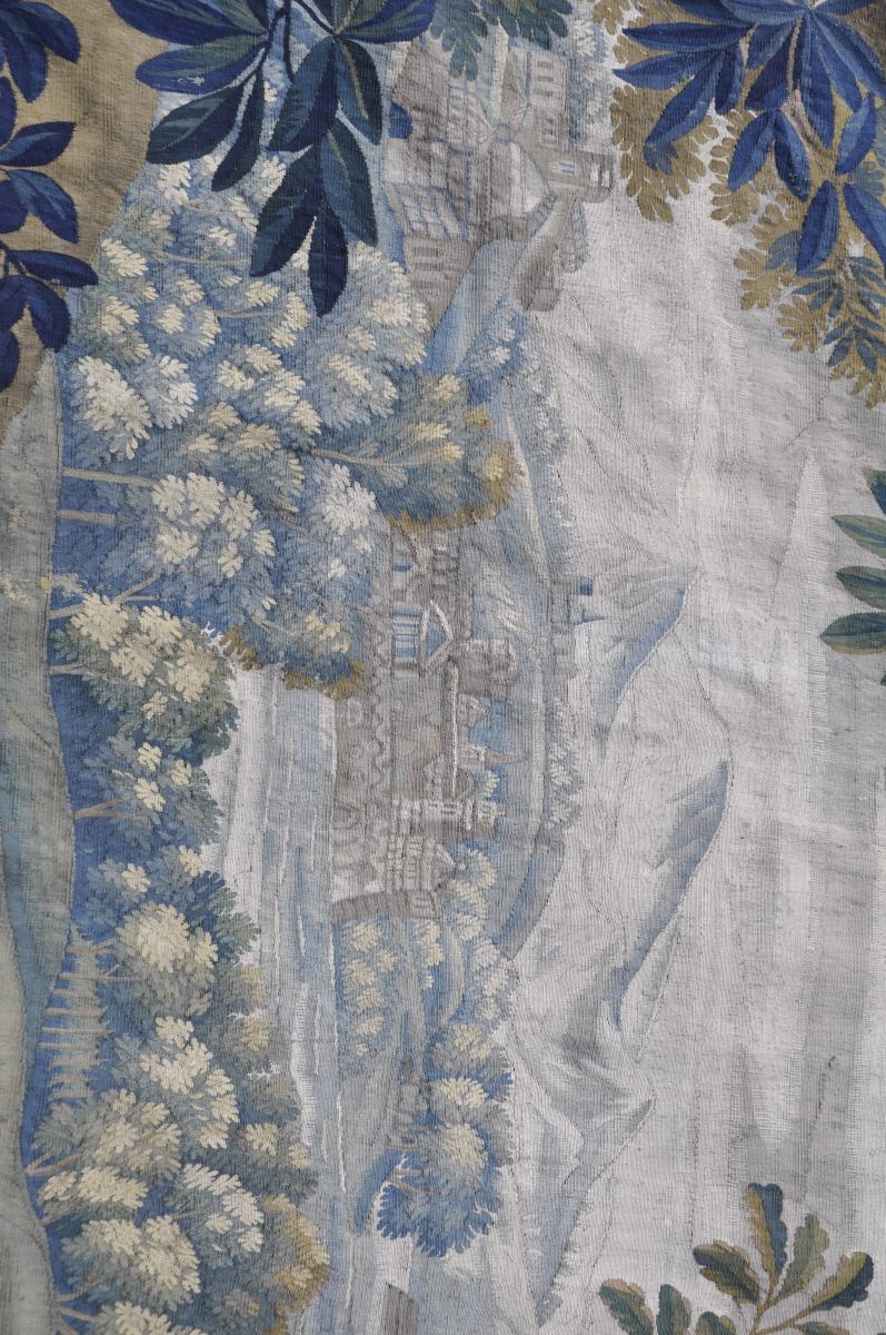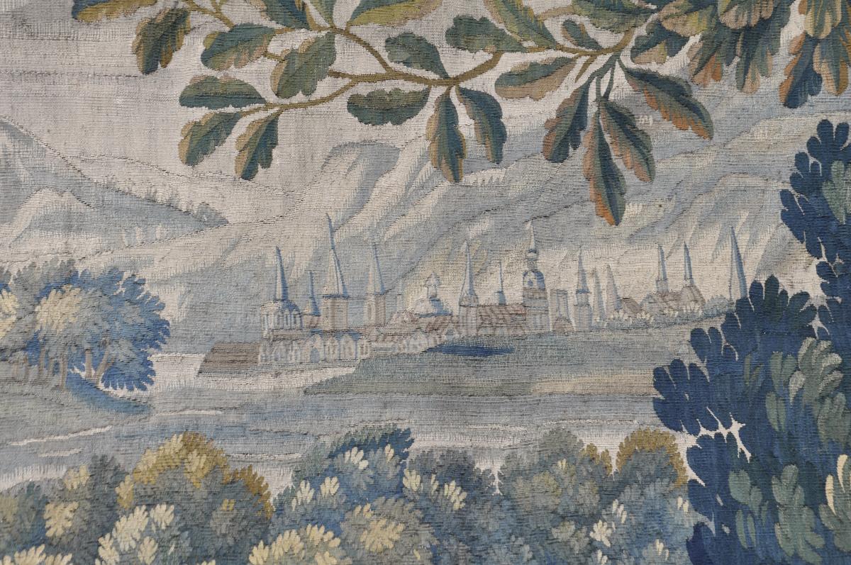 Armoiries de la ville et signature de l'atelier dans le bas de la composition : de gueules à une fleur de lys d'argent entre les lettres L et F et VEUVE DE GUILLAUME WERNIERS, active de 1738 à 1778.