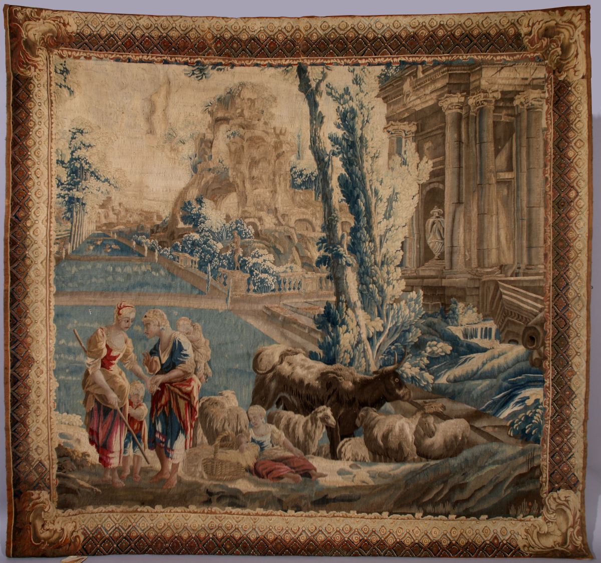 Tapisserie en laine et soie de la Manufacture royale d'après les cartons de Jean-Baptiste HUET (1745-1811). Bordure d'un cadre figuré.