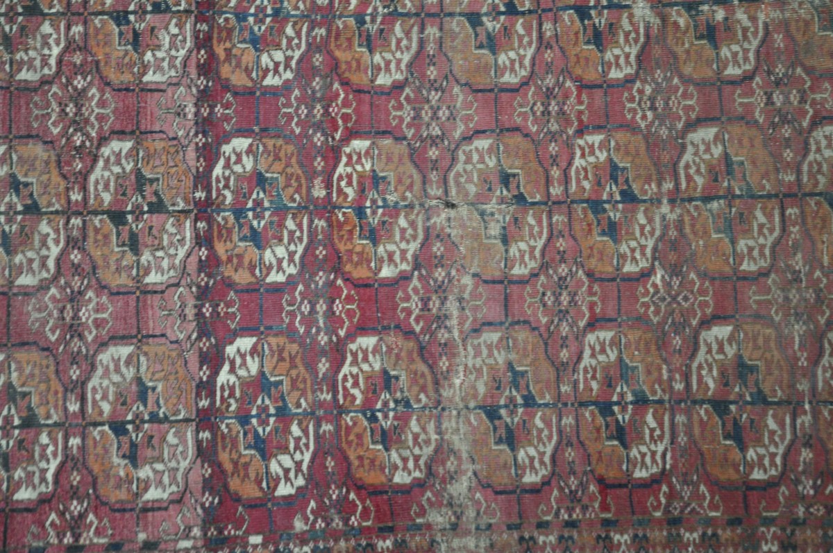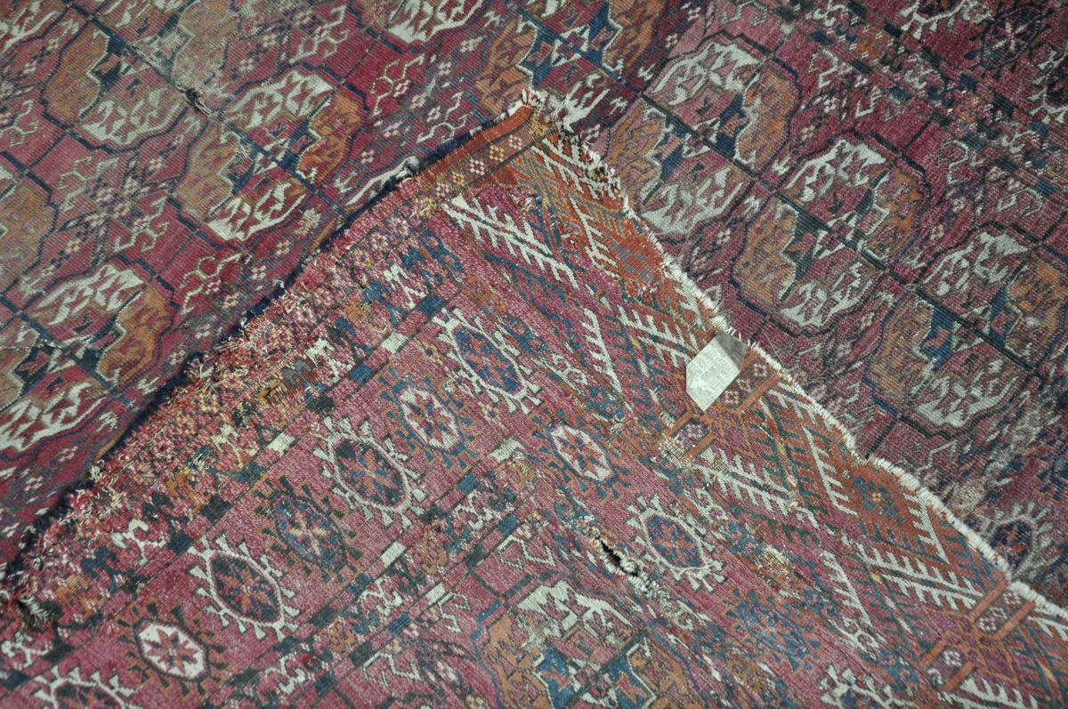 BOUKHARA. TAPIS en laine à motif de gühls sur fond rouge.