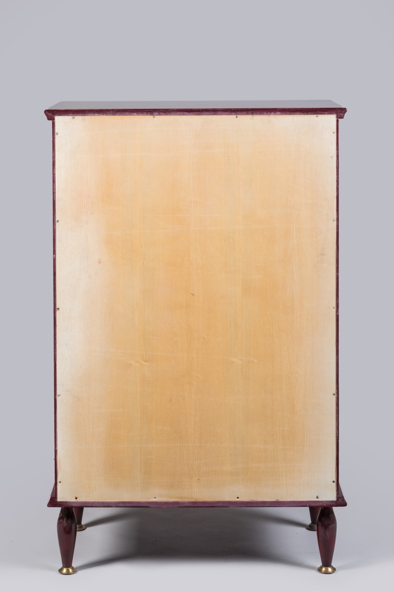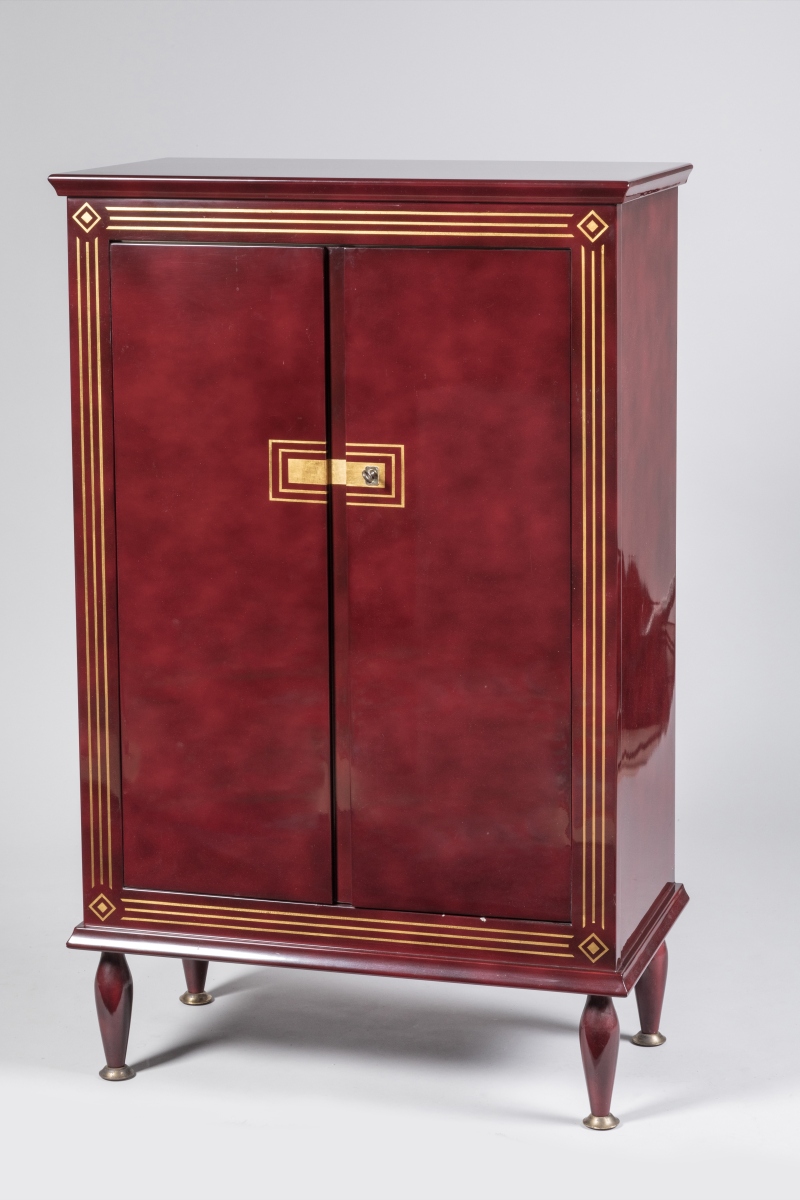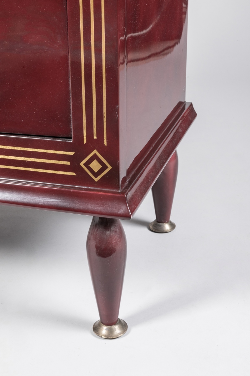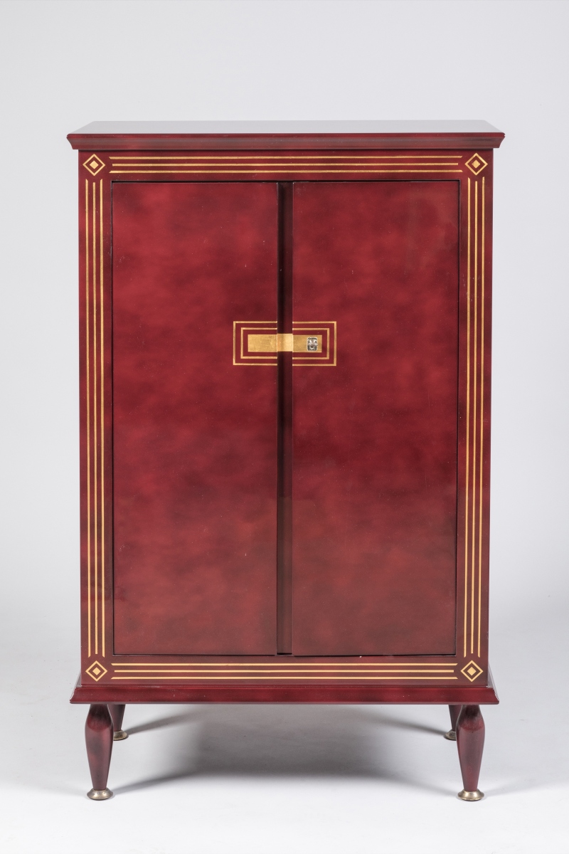 André LELEU  (1907 - 1995)ARMOIRE en laque rougeà triple...