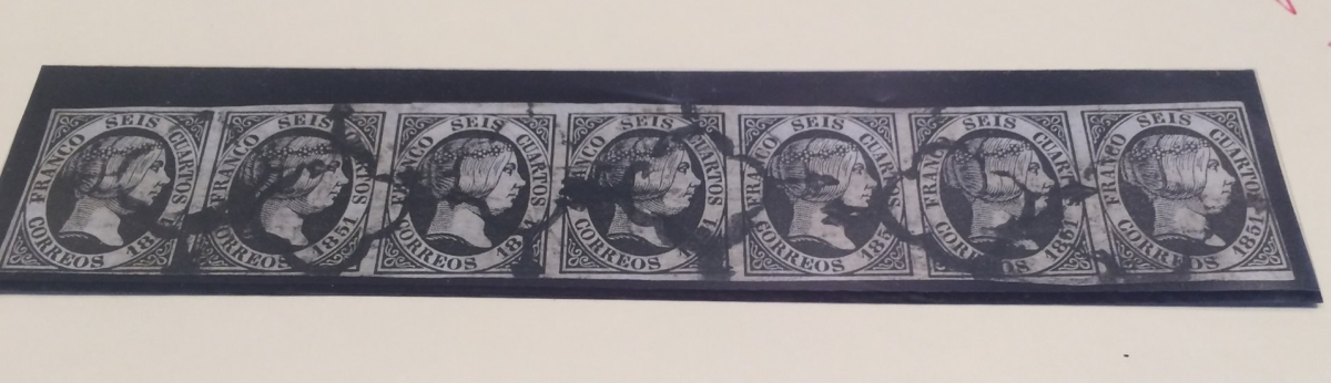 ESPAGNE.  n°6 en Bande de 7. Rare.  ...