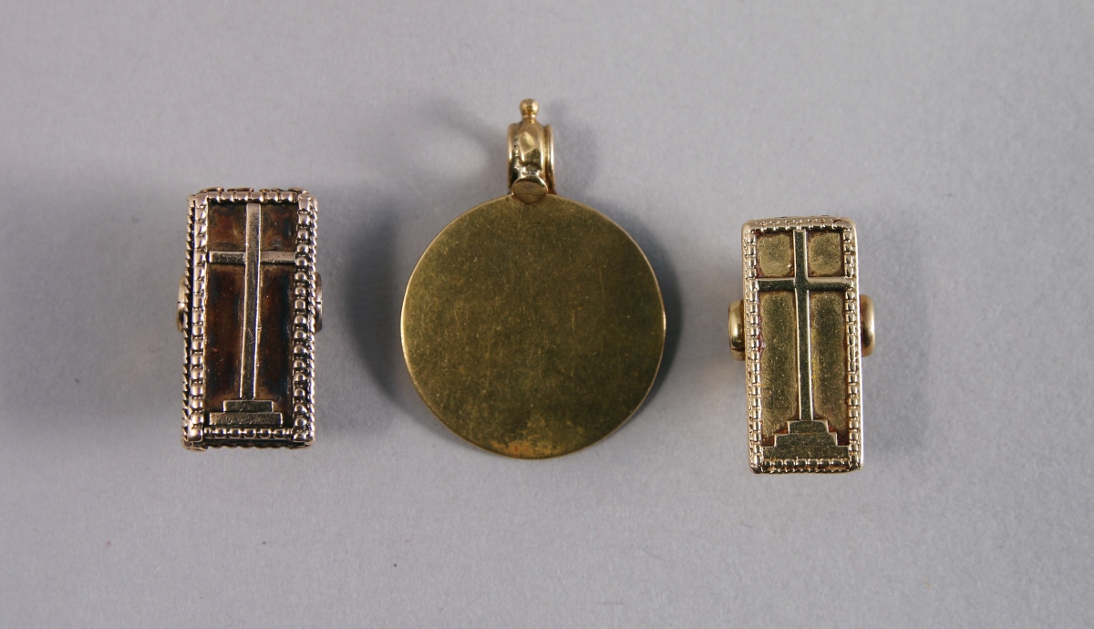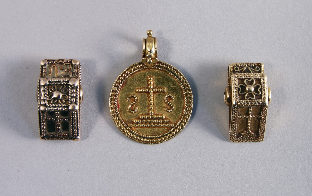 - DEUX PENDENTIFS ornés de croix. Long. 2 cm.