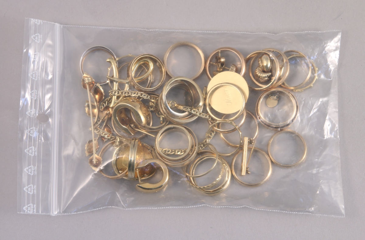 OR jaune À LA CASSE, 18K, dont anneaux et boucles d'oreilles.
