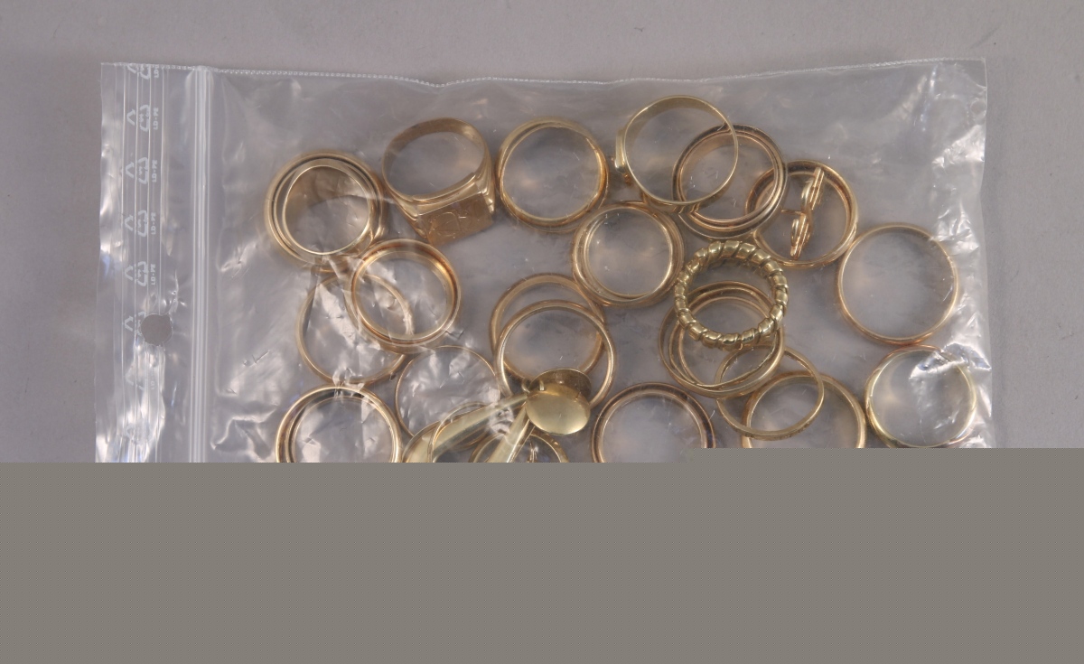 OR jaune À LA CASSE, 18K, dont anneaux et chevalières.
