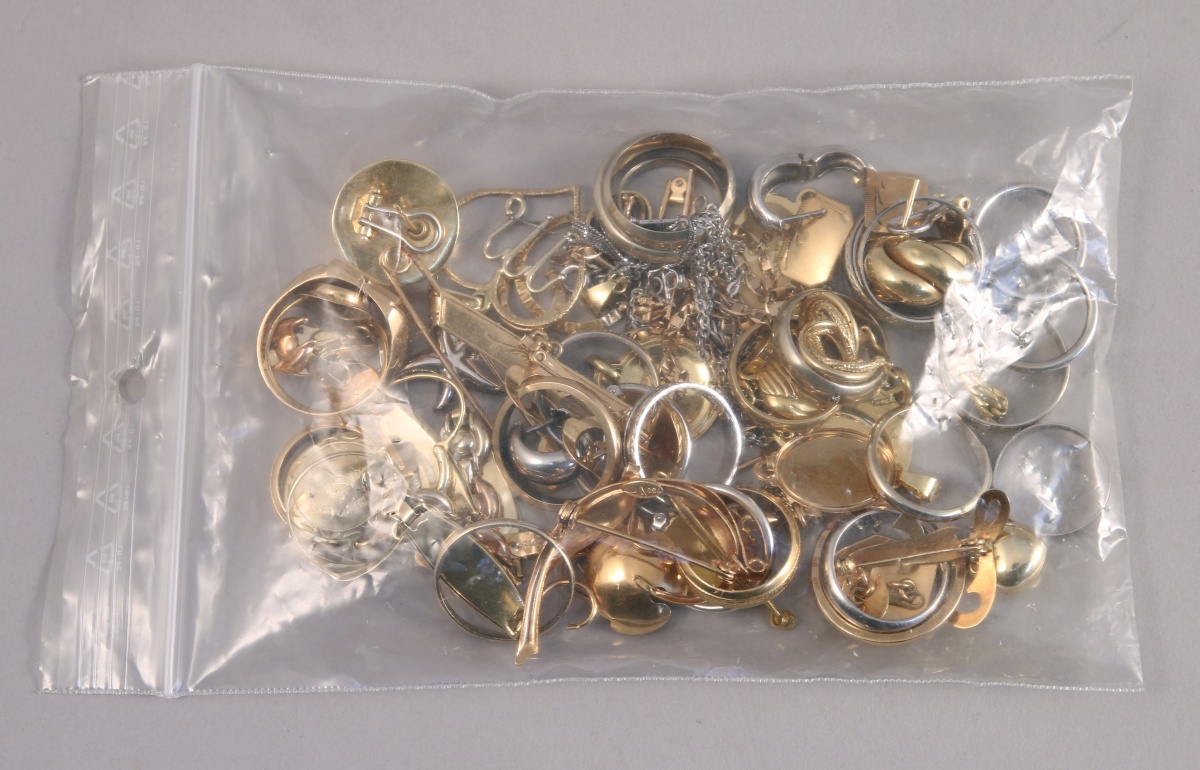 OR jaune et gris À LA CASSE, 18K, dont pendentifs, anneaux, broches.