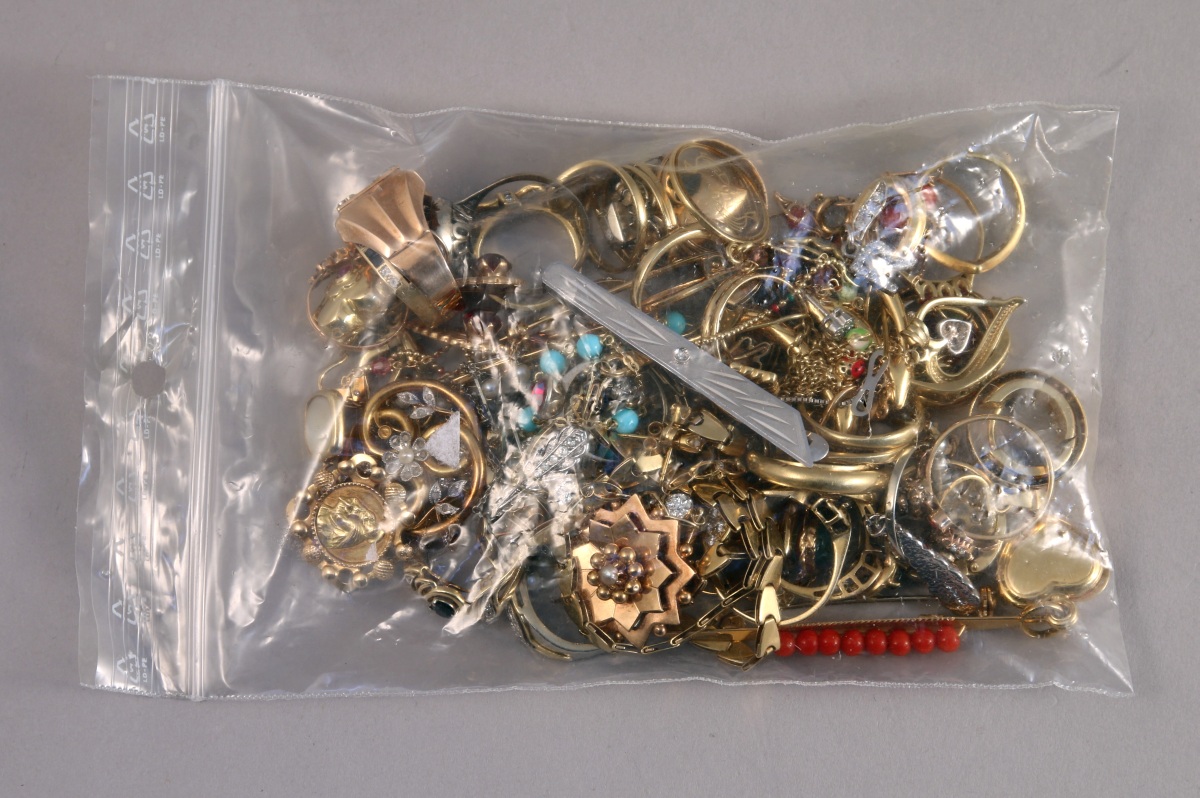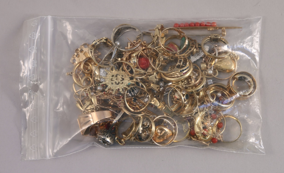 OR jaune et gris À LA CASSE, 18K, bagues, pendentifs, broches.