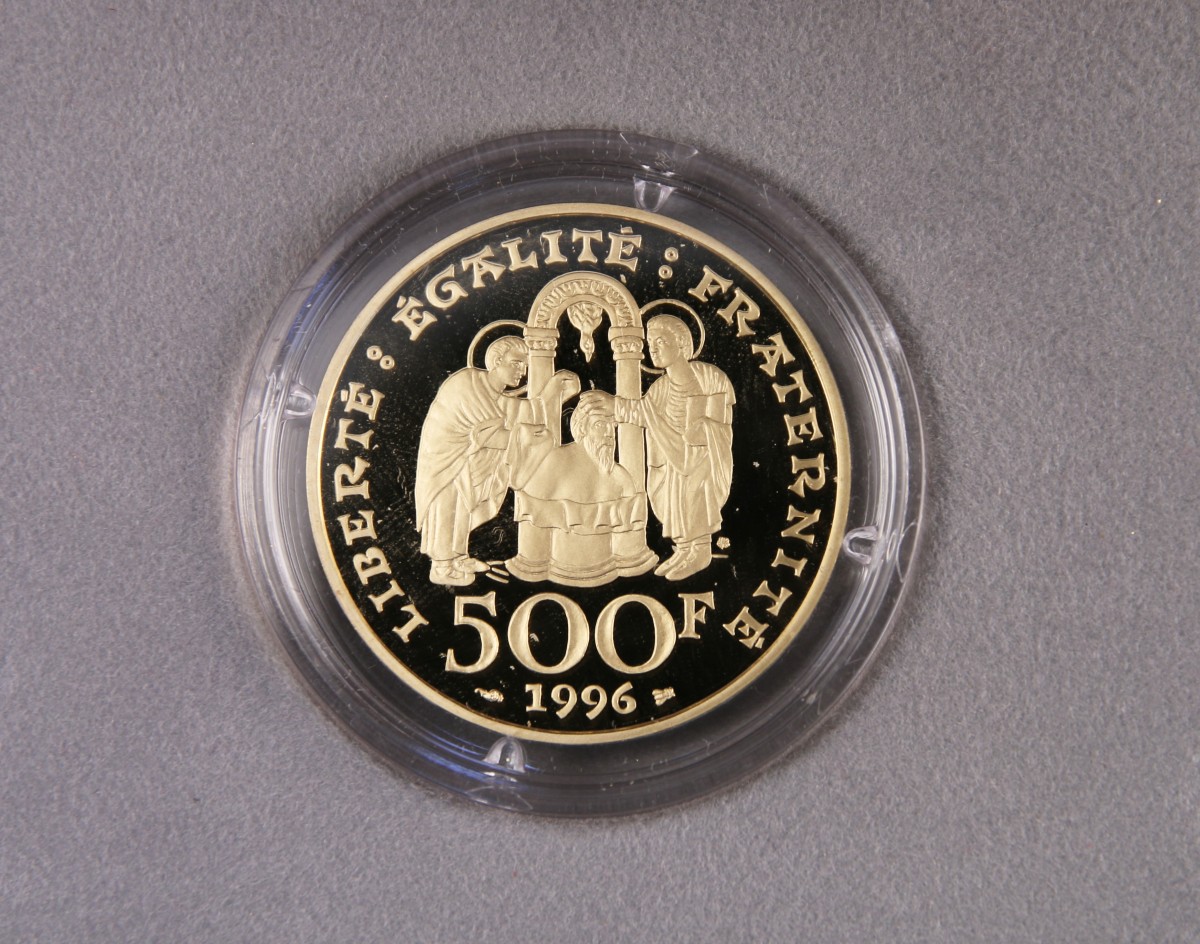 FRANCE. Pièce de 500 FRANCS OR (Paris, 1996) figurant le Baptême de Clovis éditée par la Monnaie de Paris à 250 exemplaire pour le 1500ème anniversaire du baptême de Clovis.
