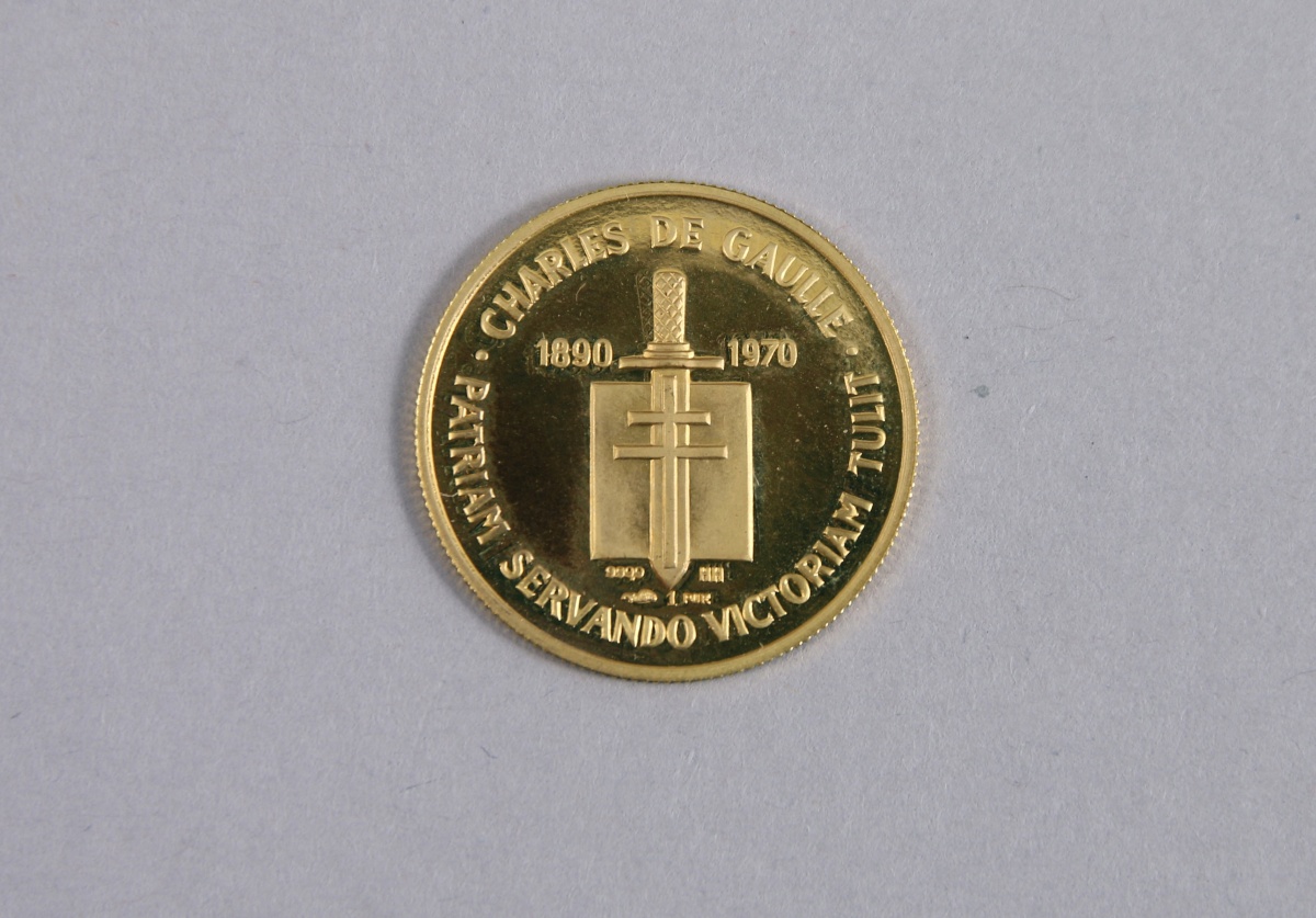 FRANCE Ve République. MÉDAILLE DE GAULLLE or, Monnaie de Paris - - Tête du général De Gaulle à droite, au-dessous signature K. B - R/CHARLES DE GAULLE// PATRIAM SERVANDO VICTORIAM TULIT - Ses armes avec dates 1890 - 1970 et poinçon (corne)1 - PUR - SPL - - Or - 26,0 mm - 8,76 g - 12 h - Poinçon: (Corne)1.
