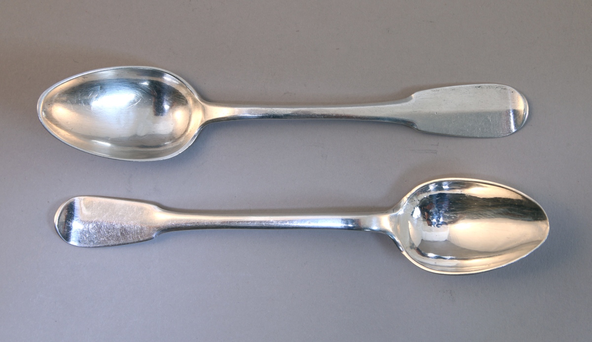 JOINT : CUILLÈRE À CAFÉ en argent, modèle uniplat. Poinçons d'un Maître-orfèvre abonné PL couronné.