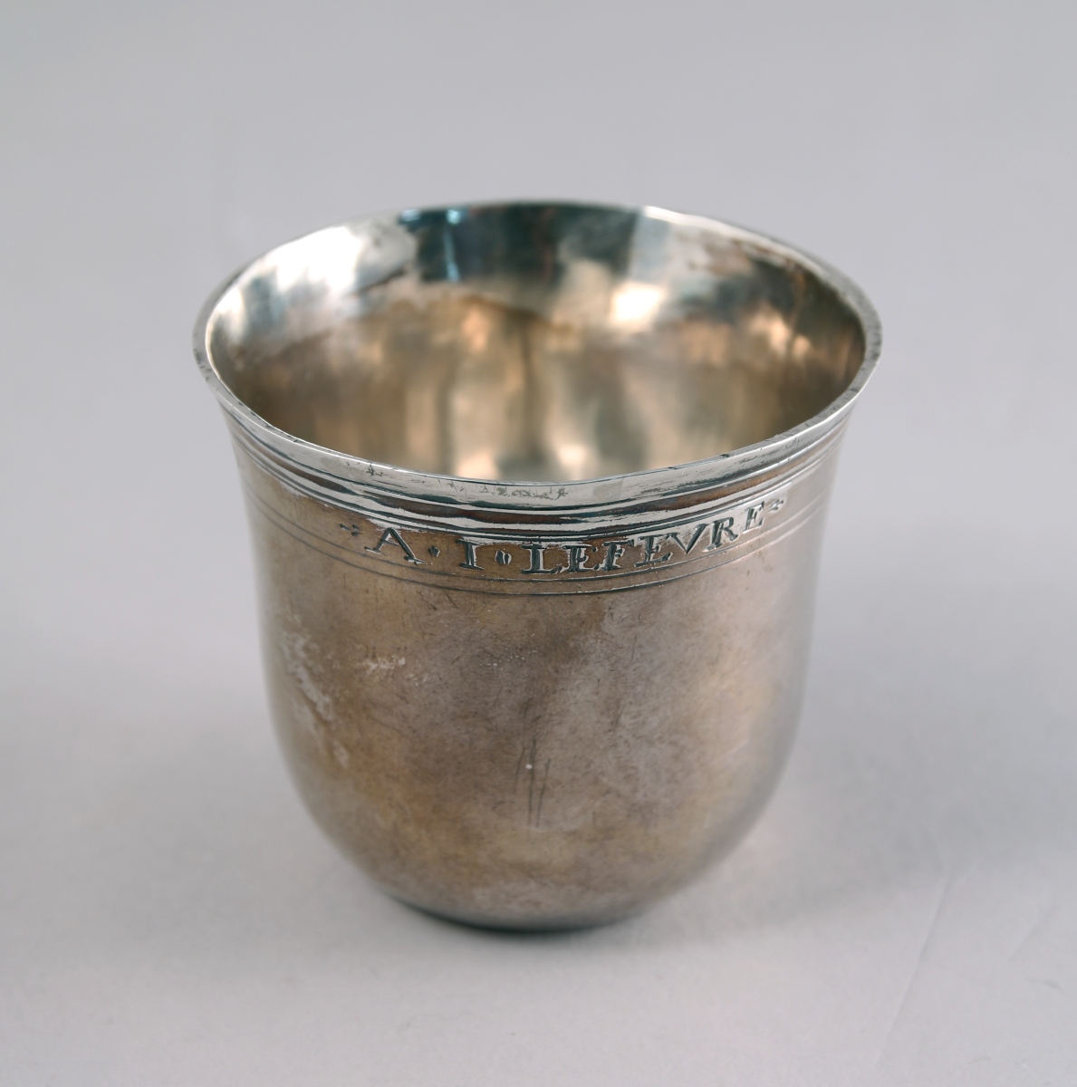 PARIS. GOBELET dit "CUL-ROND" en argent uni. Le col souligné de filets marqué "A.I.LEFEVRE" et "PD" (biffé). Poinçons aux Fermiers Généraux de la juridiction de Paris. Charge et décharge : 1732-1738. Jurande : 1734.