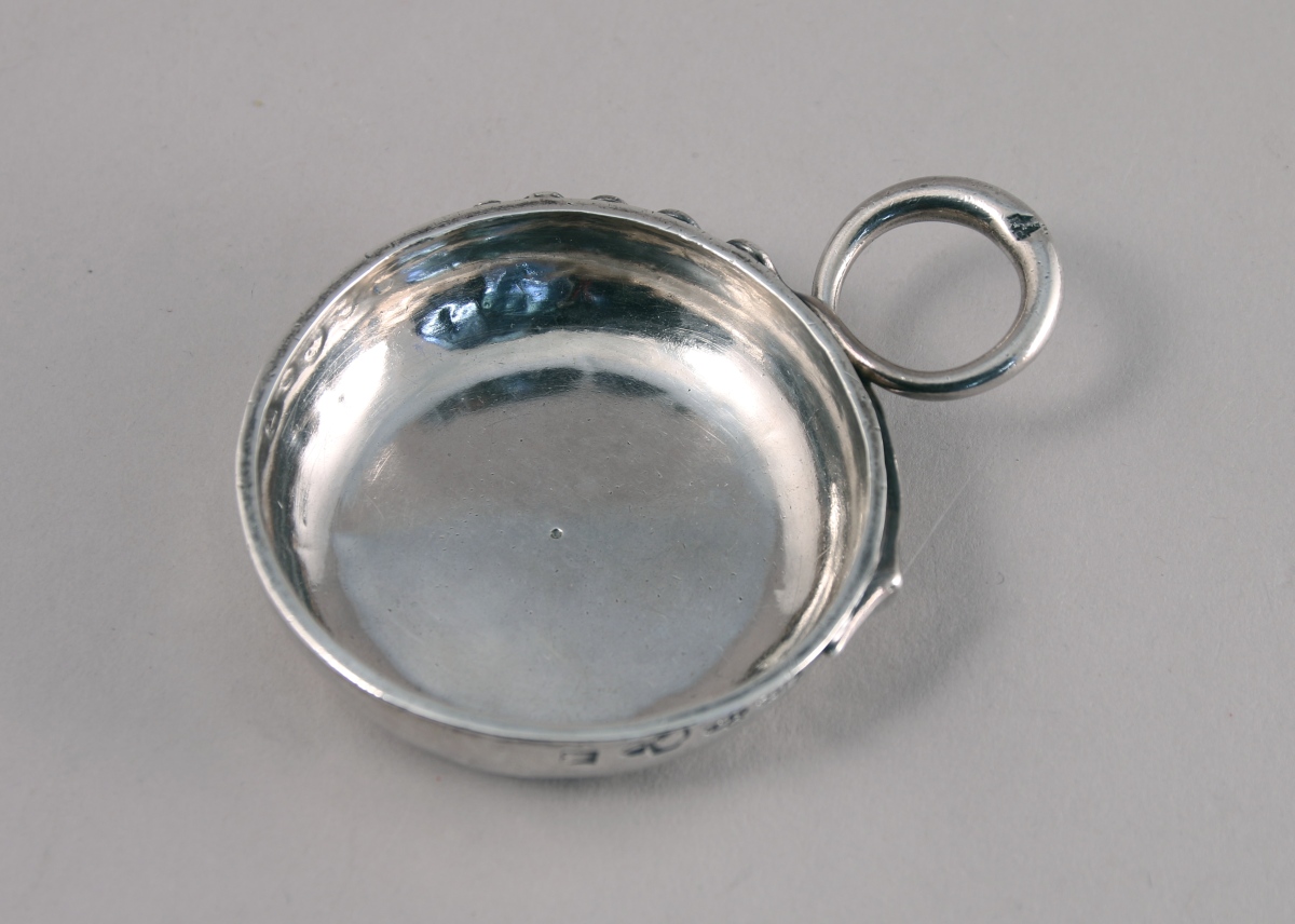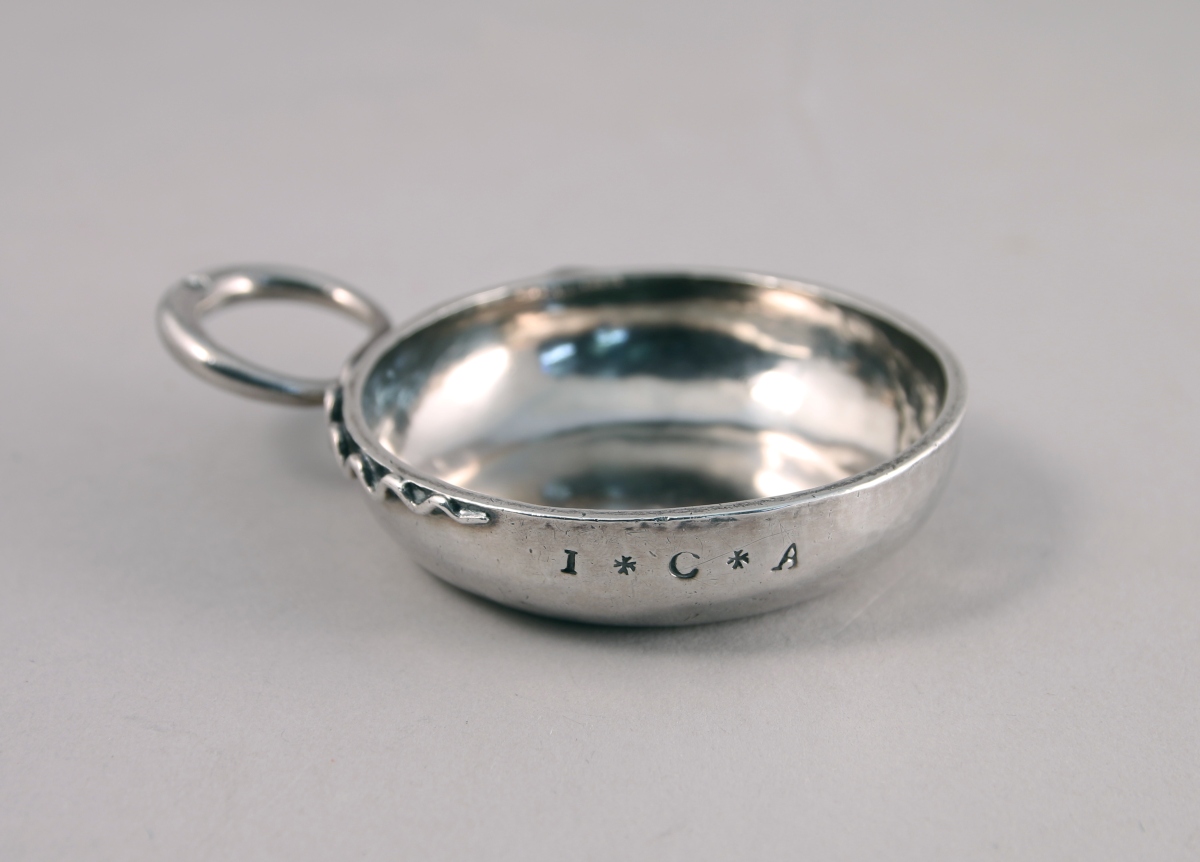 TOURS. TASTEVIN en argent uni, anse serpentiforme. Marqué "I+C+A".