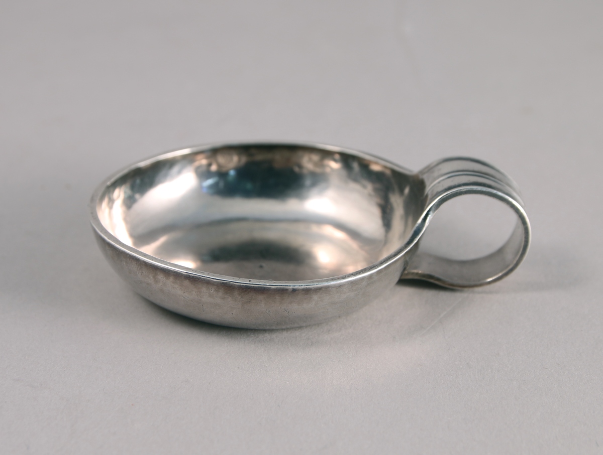 TOURS. TASTEVIN en argent uni, anse à enroulement cannelée. Marqué "S.S.G.".