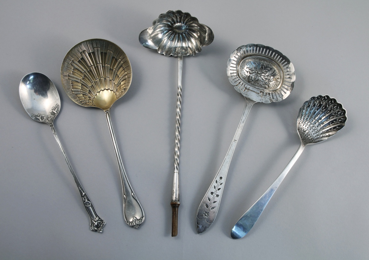 - CUILLÈRE à SAUPOUDRER, la spatule gravée d'un vase fleuri et feuillagé. Cuilleron de forme ovale repercé. Poinçon Vieillard, Hautes-Pyrénées, 1819-1838. Poids : 49 g. (restaurations importantes)