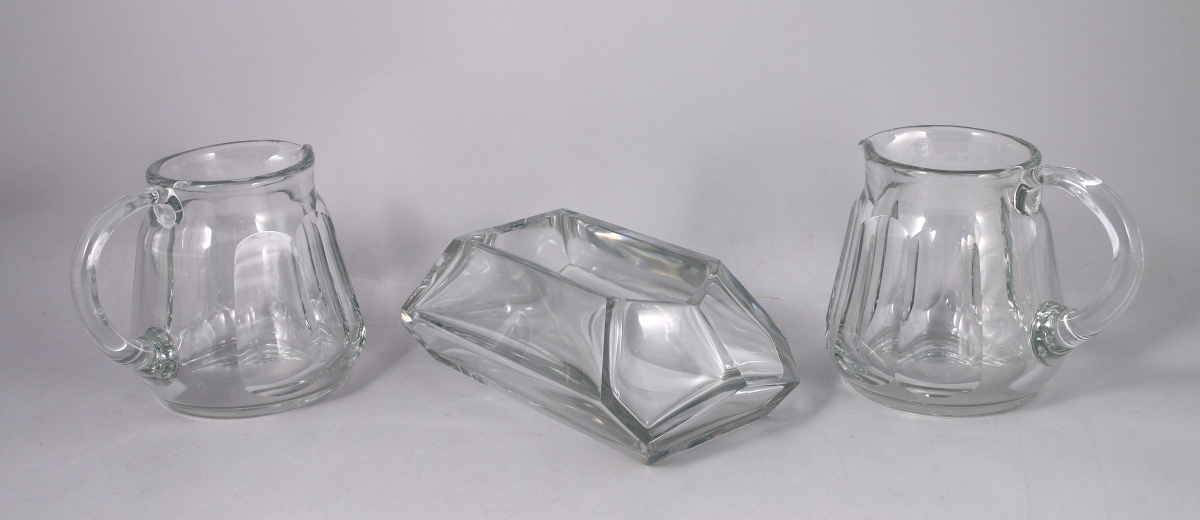 - CENTRE DE TABLE en cristal taillé à pans. Cachet. Haut. 9, Long. 25, Larg. 13,5 cm. (éclat)