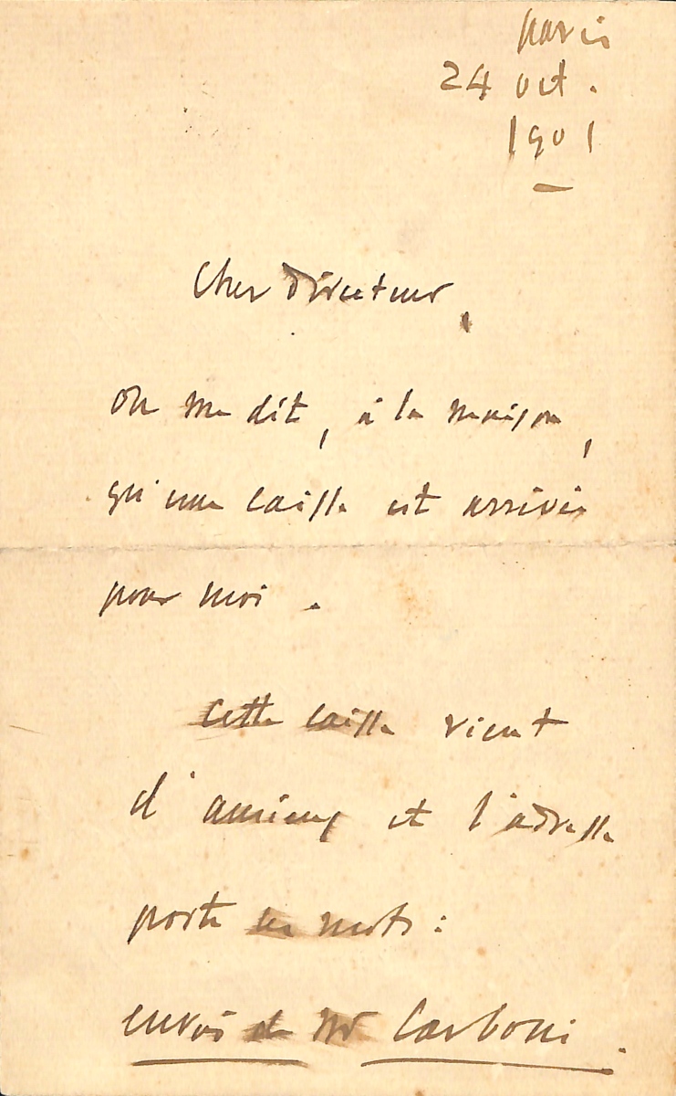 L.A.S., Paris, 24 octobre 1901, 4 pages in-8 : " Cher directeur, (