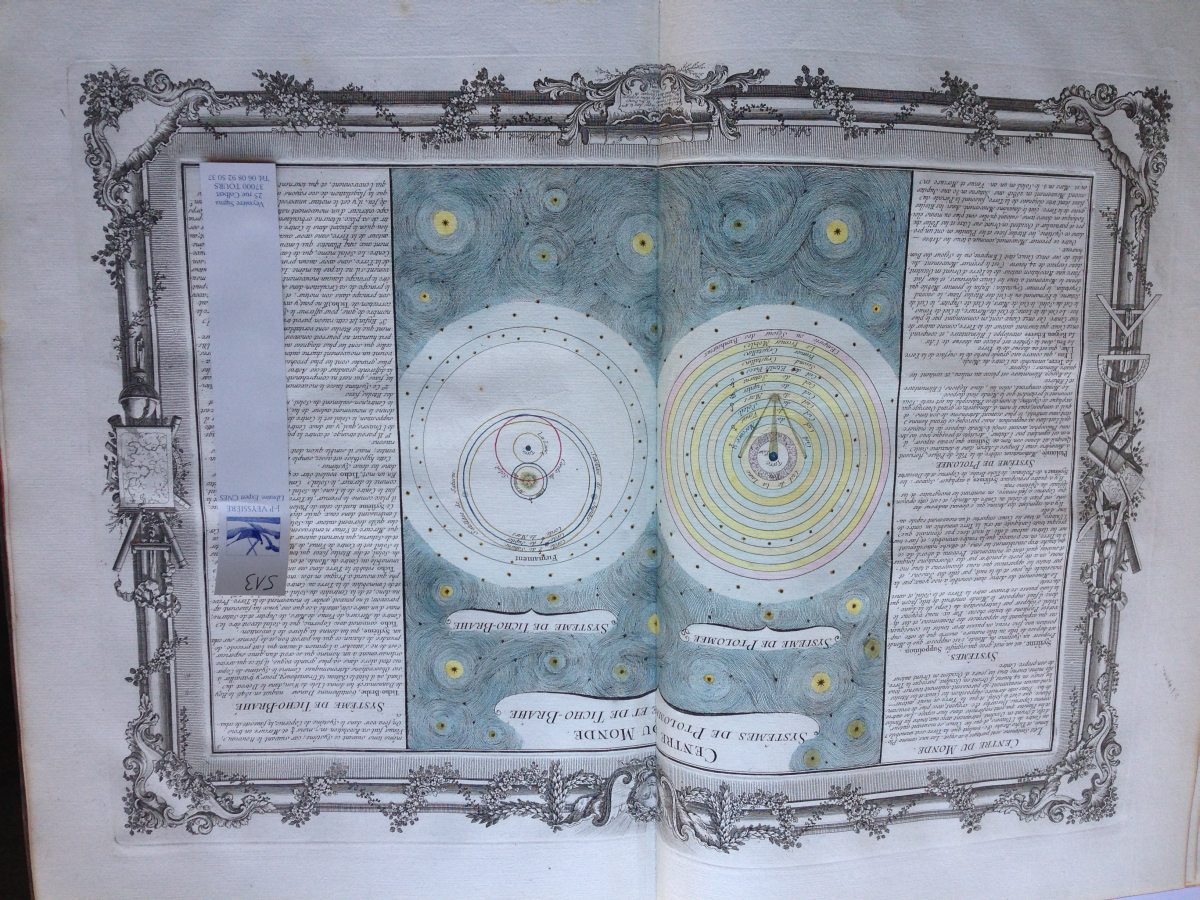 Buy de Mornas est l'auteur de 4 atlas publiés à des dates différentes, et vendus séparément. Celui-ci, le premier publié, traite de la cosmographie, de la géologie, de l'astronomie, de l'océanographie, des vents et des courants etc. Les illustrations représentent des cartes géographiques, des instruments scientifiques, des cartes du ciel, des globes célestes et terrestres, etc...accompagnées soit en encadrements, soit en planches de texte séparées, des explications utiles.