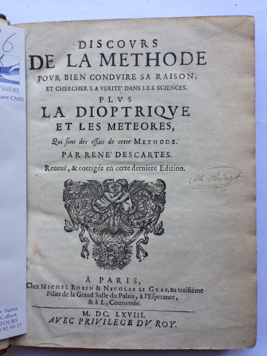 Discours de la Méthode pour bien conduire sa raison et chercher la vérité dans les sciences. Plus la dioptrique et les Météores qui sont des Essais de cette Méthode, par René Descartes. Reueue et corrigée en cette dernière édition.