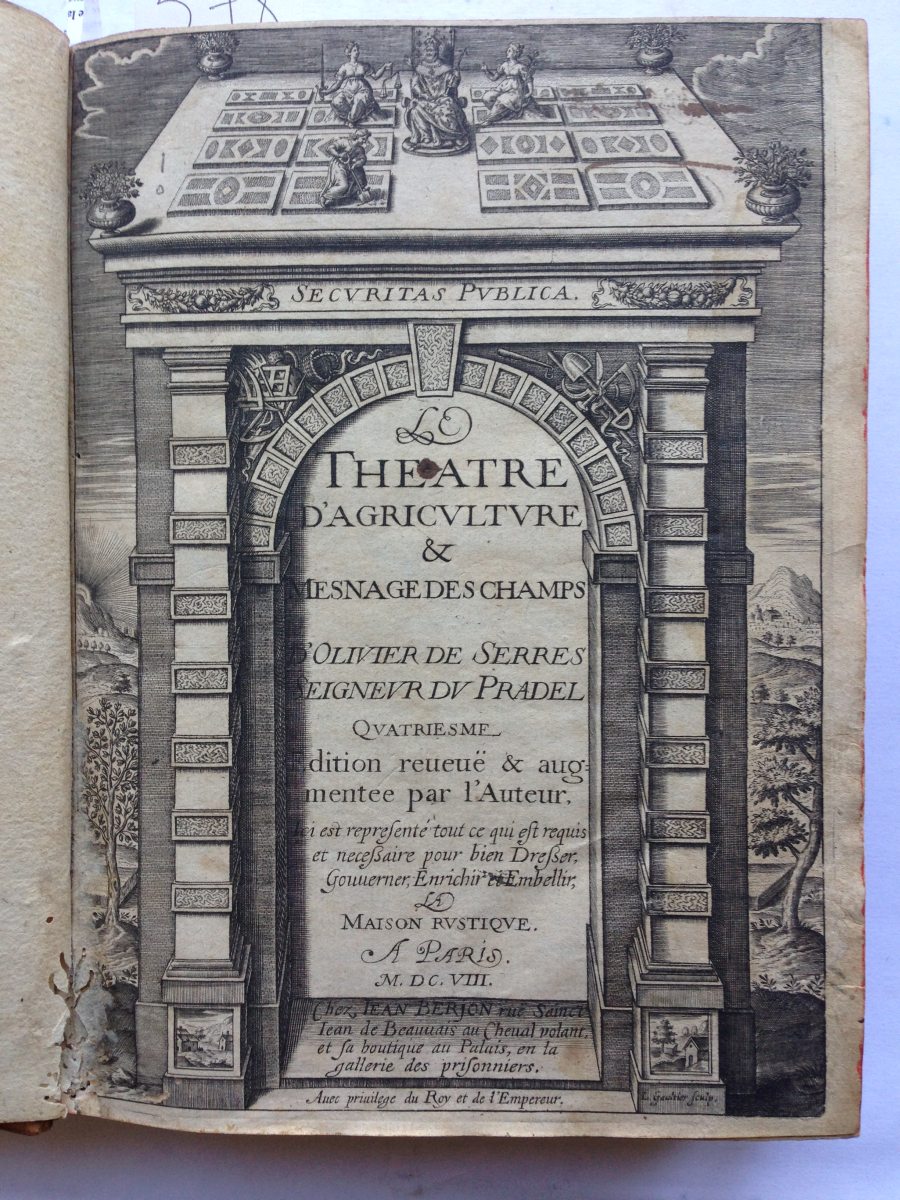 Le Théâtre d'Agriculture & le Mesnage des Champs d'Olivier de Serres, Seigneur du Pradel. Quatriesme édition, reveue et augmentée par l'Auteur. Ici est représenté tout ce qui est requis et nécessaire pour bien Dresser, Gouverner, Enrichir et Embellir la Maison Rustique.