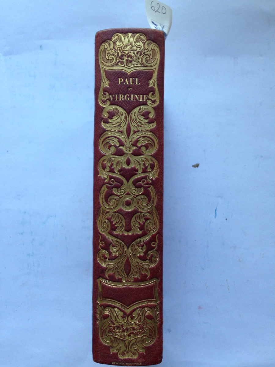 Superbe exemplaire dans une reliure très fraîche de Simier. Un des plus beaux livres illustrés de la période romantique : environ 45 vignettes gravées sur bois in-texte ; 29 hors-texte gravés, sur bois, tirés sur Chine appliqué, et protégés par des serpentes imprimées ; 7 portraits hors-texte gravés sur acier ; une carte de la Réunion en couleurs. Les dessins sont de Meissonnier, Tony Johannot, etc... Les vélins supportant les Chine appliqués sont, comme le remarque Carteret, pratiquement toujours affligés de fortes rousseurs.
