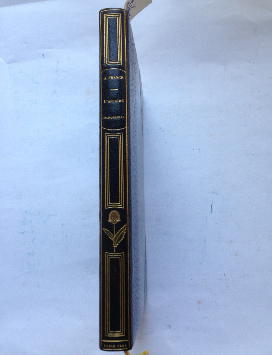 Grand in-8 (252 X 170 mm)1/2 maroquin à coins anthracite. Dos sans nerfs, avec trois rectangles composés d'un triple filet droit doré ; motif mosaïqué de chardon. Tête dorée.