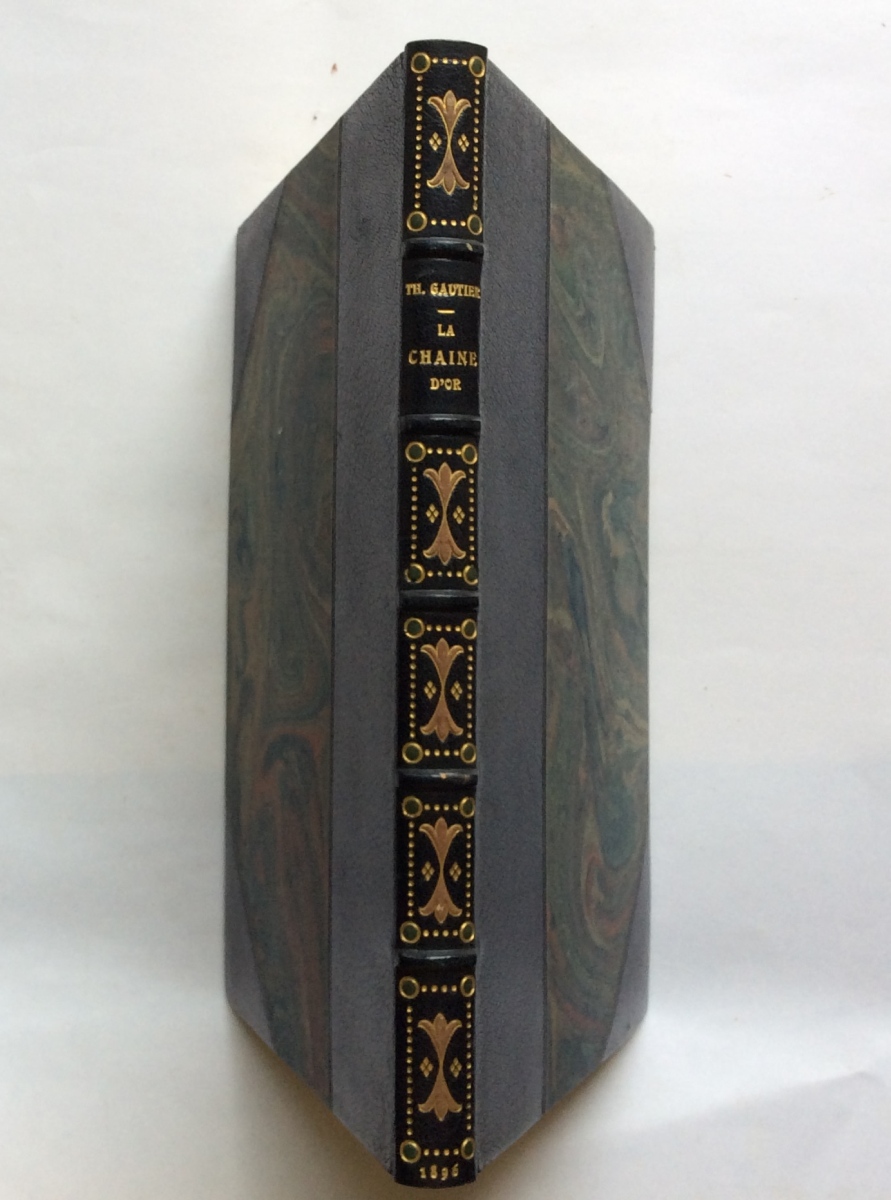 Grand in-8 (275 X 185 mm), 1/2 maroquin à coins à gros grains écrasés bleu-nuit. Dos orné d'une mosaïque de fleurs stylisées. Tête dorée. Reliure signée René Kieffer, établie dans les années 1920. (Deux coins légèrement frottés).