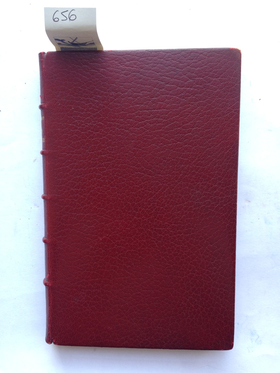 In-8, (6 ff), VII pages, 119 pages, (4 ff) ; couvertures conservées. Plein maroquin janséniste lie-de-vin, large encadrement intérieur, gardes de moire. Toutes tranches dorées. Reliure du temps signée Canape et Corriez. (Coiffe inférieure et coupe inférieure frottées.)