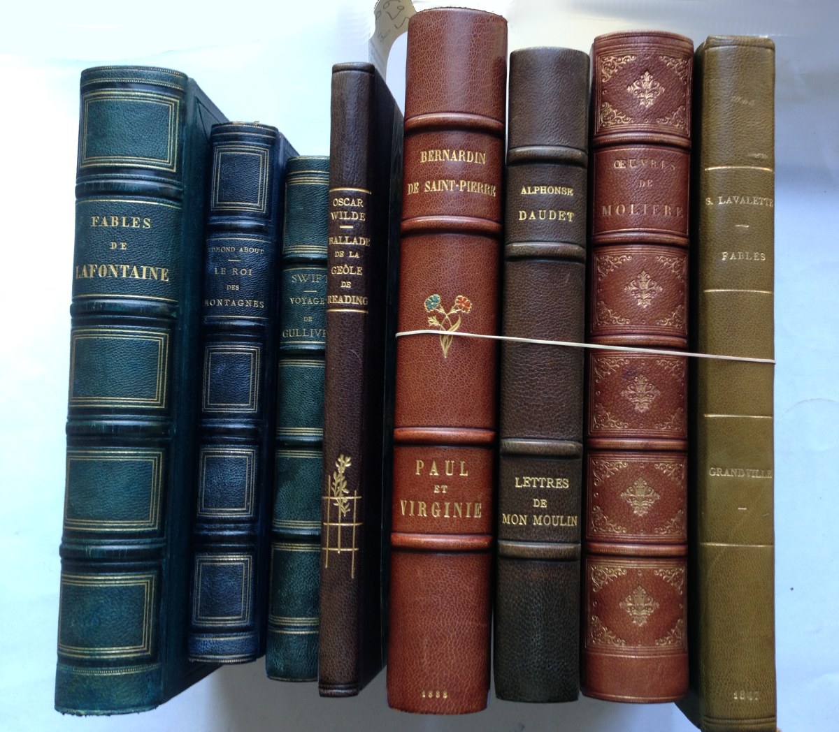 Lot de 8 volumes grand in-8, correctement reliés en 1/2 maroquin ou 1/2 chagrin. (6 des ouvrages ont la tête dorée) :