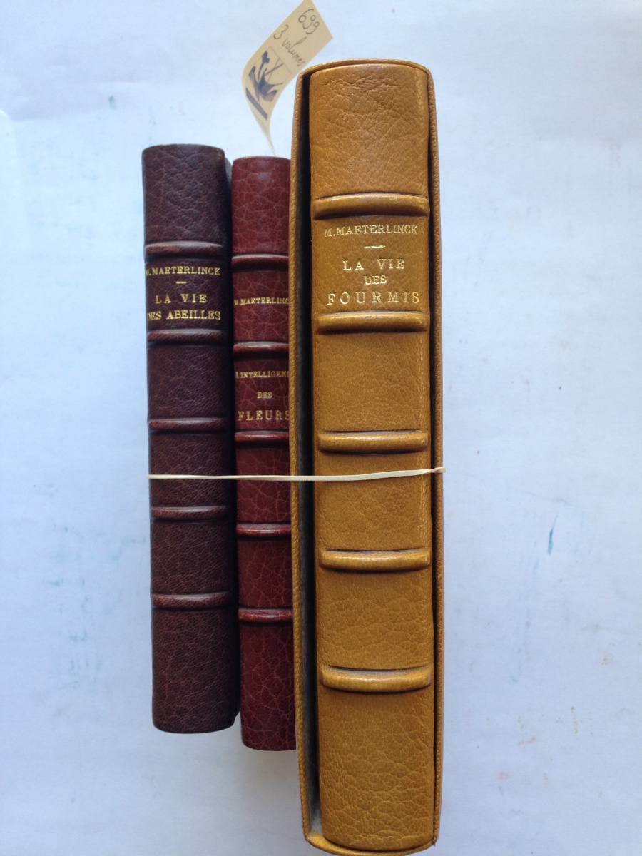 - (On joint) du même auteur : La vie des abeilles (Paris, Crès, 1922) et L'intelligence des fleurs (Paris, Crès, 1923), tous deux in-8 en 1/2 maroquin du temps, tête dorée ; sur vélin de Rives.