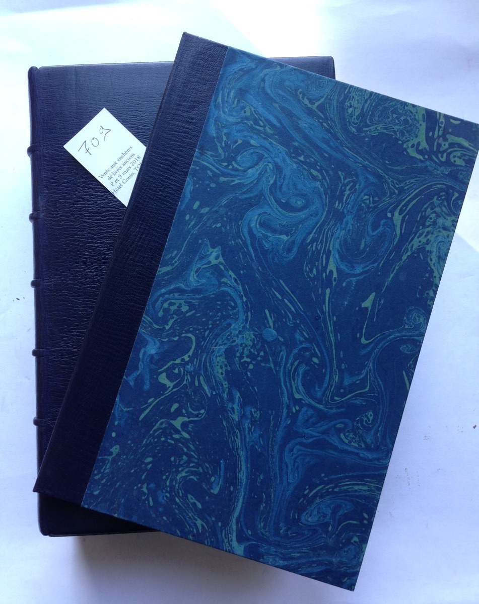 In-4°, plein maroquin janséniste bleu-nuit. Suite des 24 eaux-fortes placée dans une chemise en 1/2 maroquin bleu-nuit. Etui bordé de maroquin.