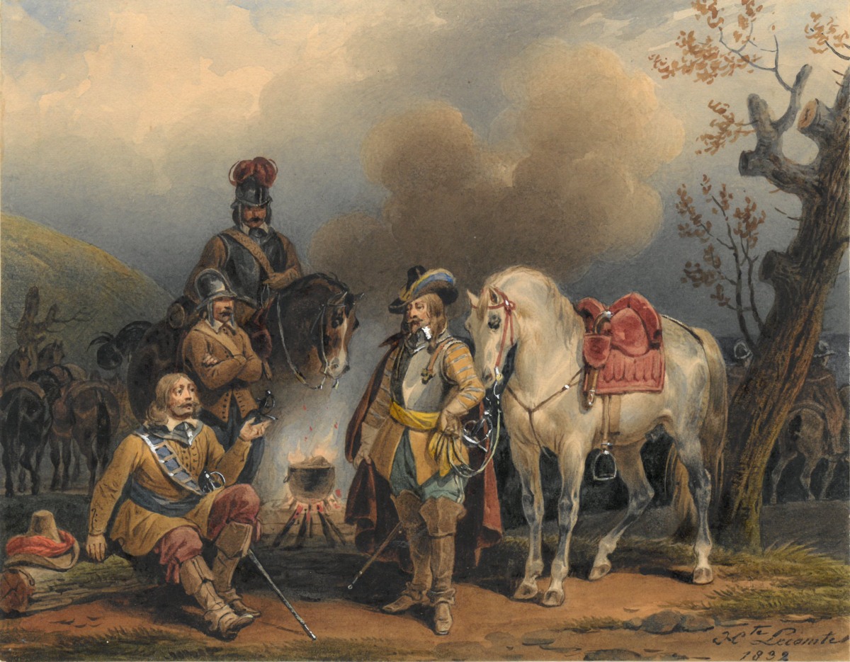 Hyppolite LECOMTE (Puiseaux 1781 - Paris 1857)La halte de cavaliers.Aquarelle...
