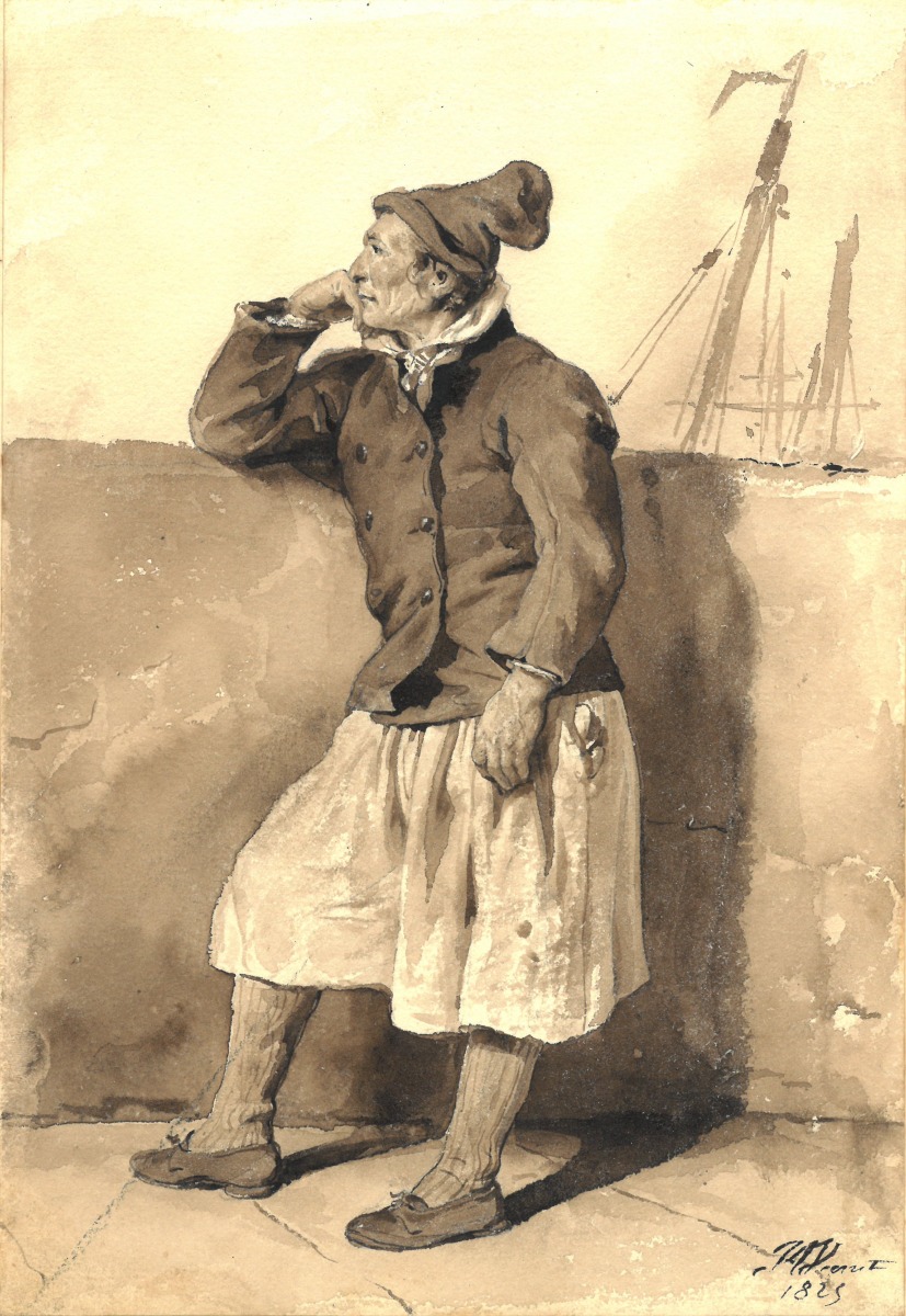 Émile Jean Horace VERNET (Paris 1789 - 1863)Marin mirant l'horizon.Lavis...