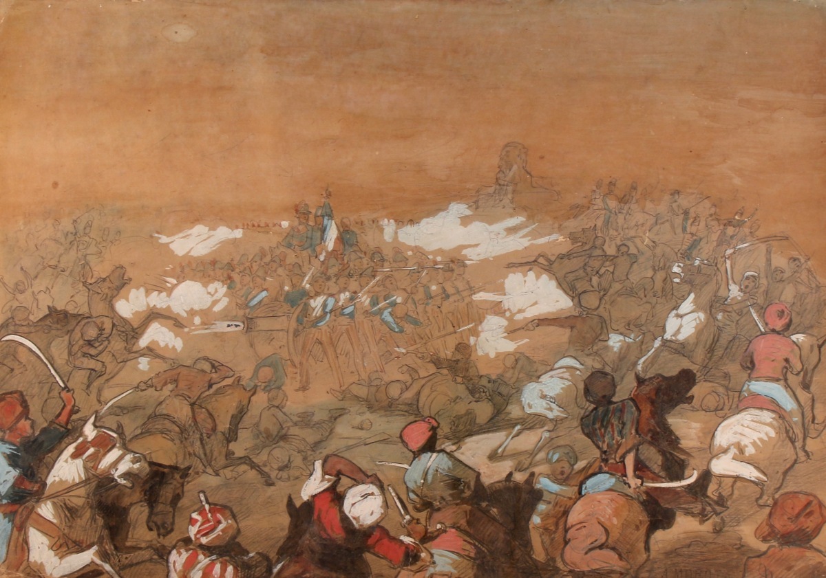 Aimé Nicolas MOROT (1850-1913)La bataille des Pyramides. Esquisse gouachée signée...