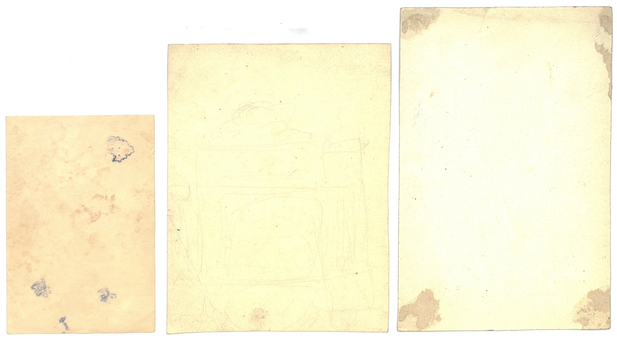 Une réunion de 5 dessins (un paysage et trois scènes de genre et un peintre dans son atelier).