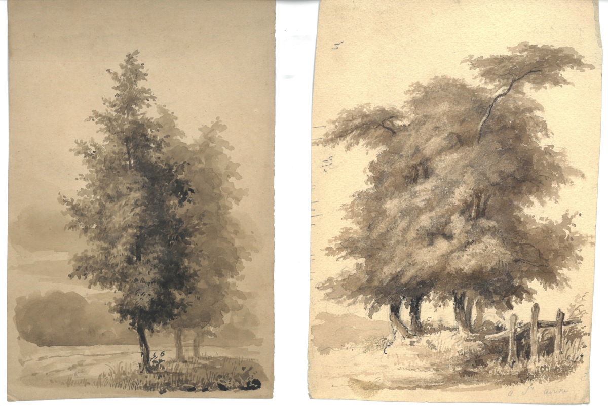 Une réunion de 8 dessins (quelques-uns sont datés et situés, paysages, études d'arbres et habitations).