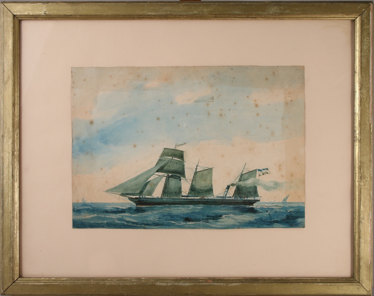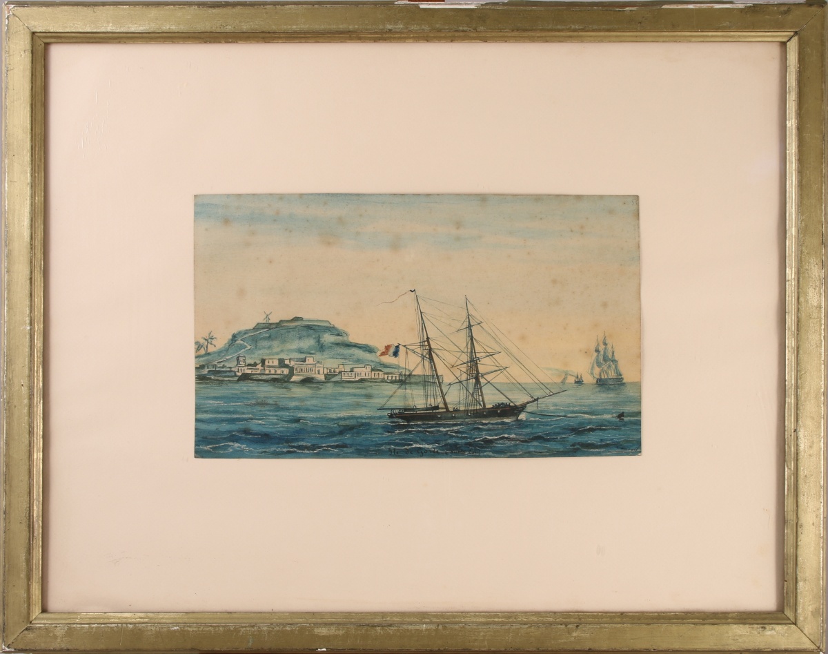 COUREIL (?), école FRANÇAISE du XIXe. "Brigantin français devant "L'...