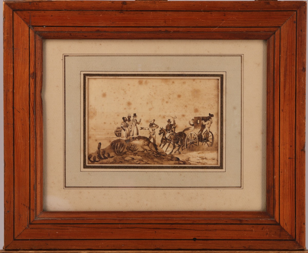 "Sepia du comte de Novion / Le bain (?) en voiture à la Guadeloupe".