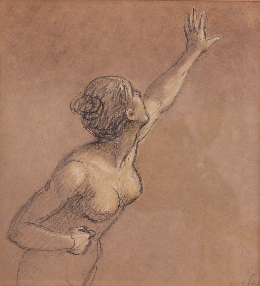 Pierre noire, estompe et rehauts de craie blanche. Signé en bas à droite.
