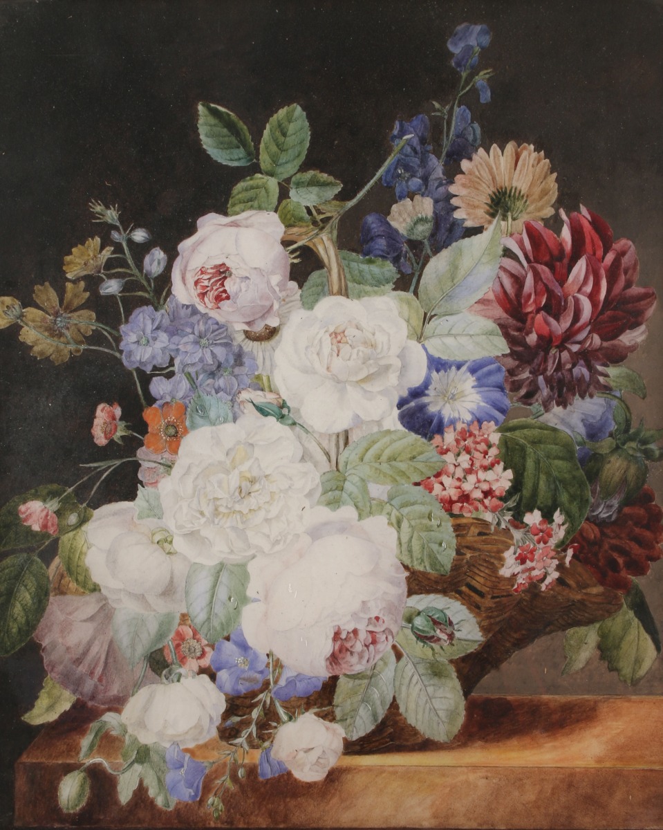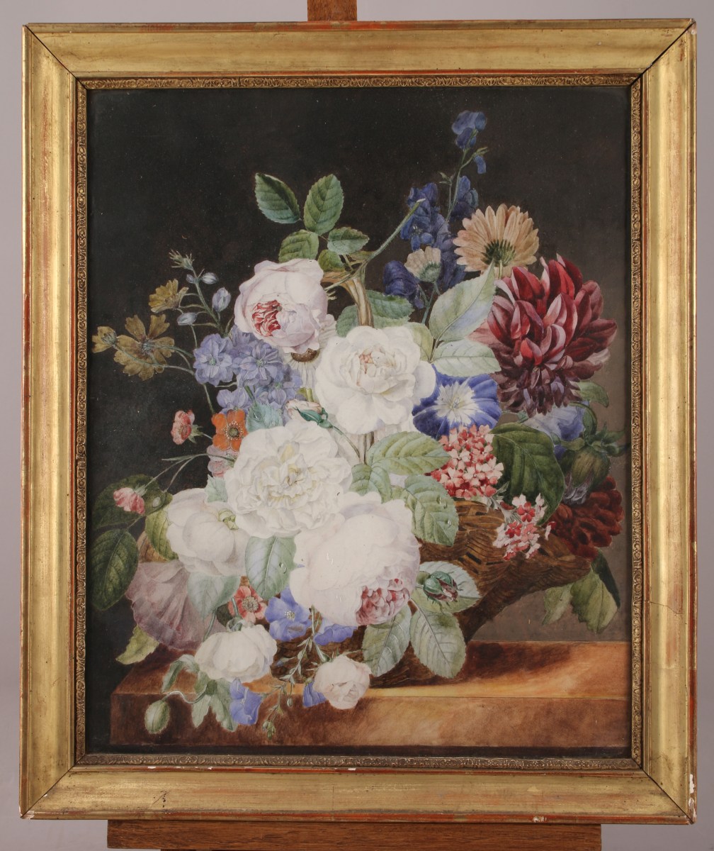 Henriette de LONGCHAMP (1818-?) attribuée àBouquet de fleurs épanouies.Aquarelle gouachée,...
