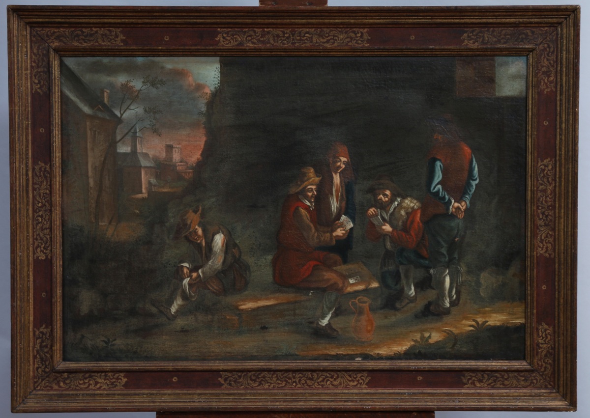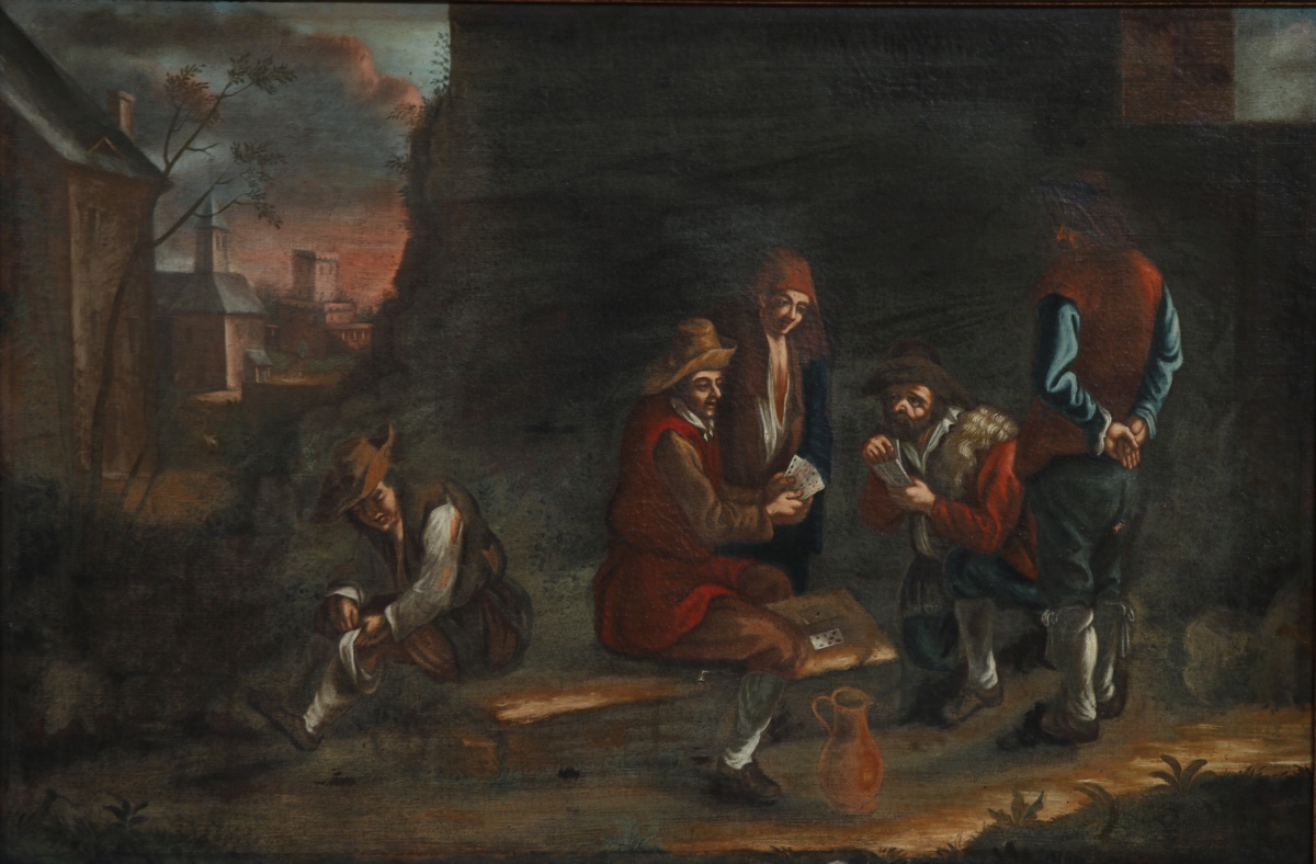 École ITALIENNE vers 1700Joueurs de cartes au milieu des ruines...