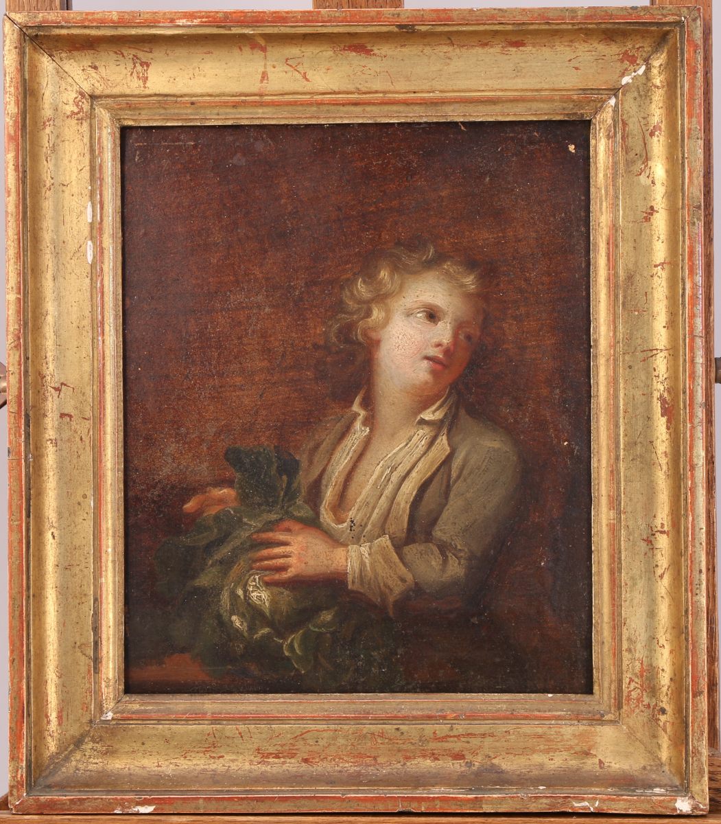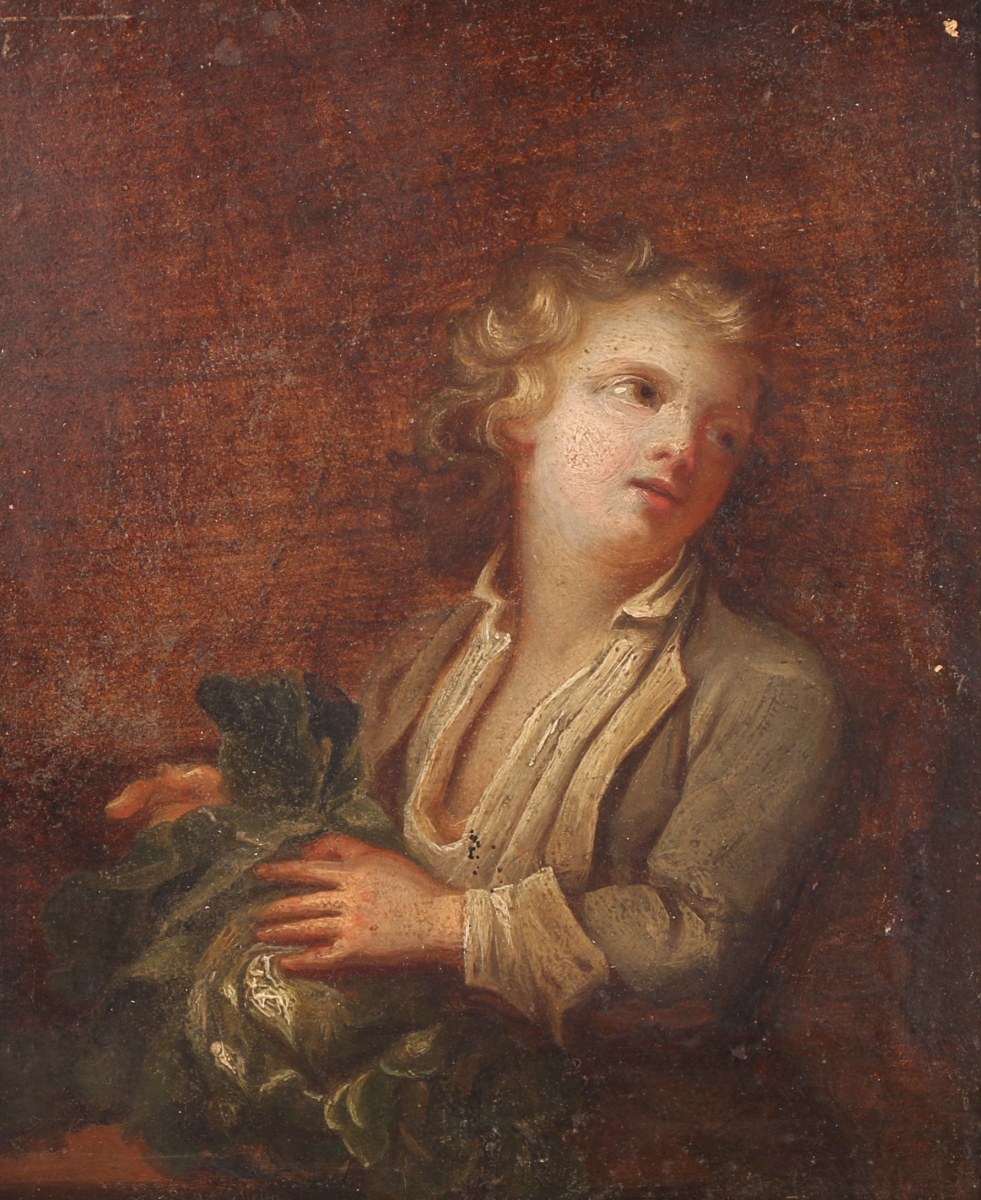 École FRANÇAISE du XVIIIe.L'enfant au chou.Toile marouflée sur carton.Haut. 22,...
