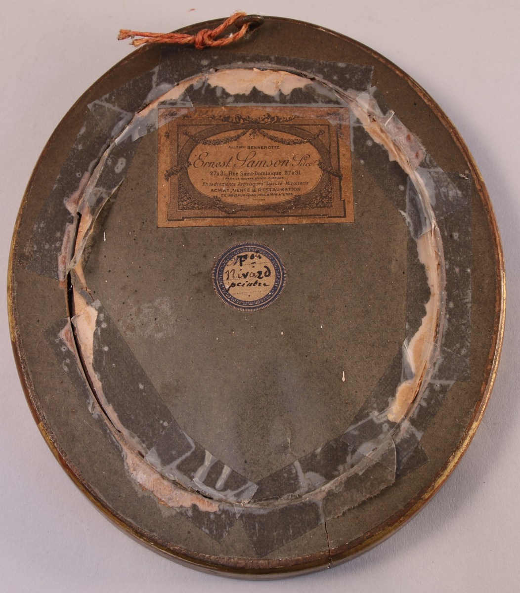 JOINT : Portrait d'un aristocrate de profil. Procédé photographique collé en médaillon. Haut. 13, Larg. 10,5 cm.