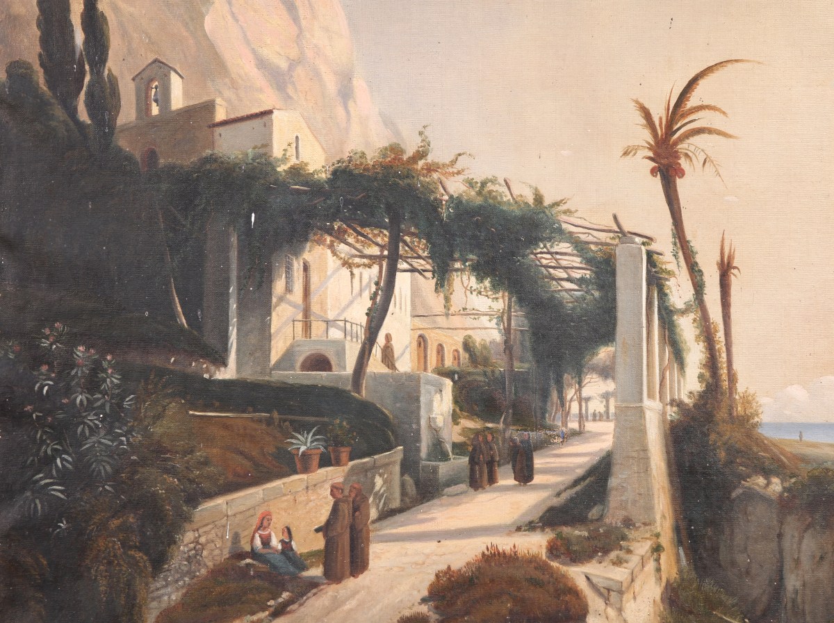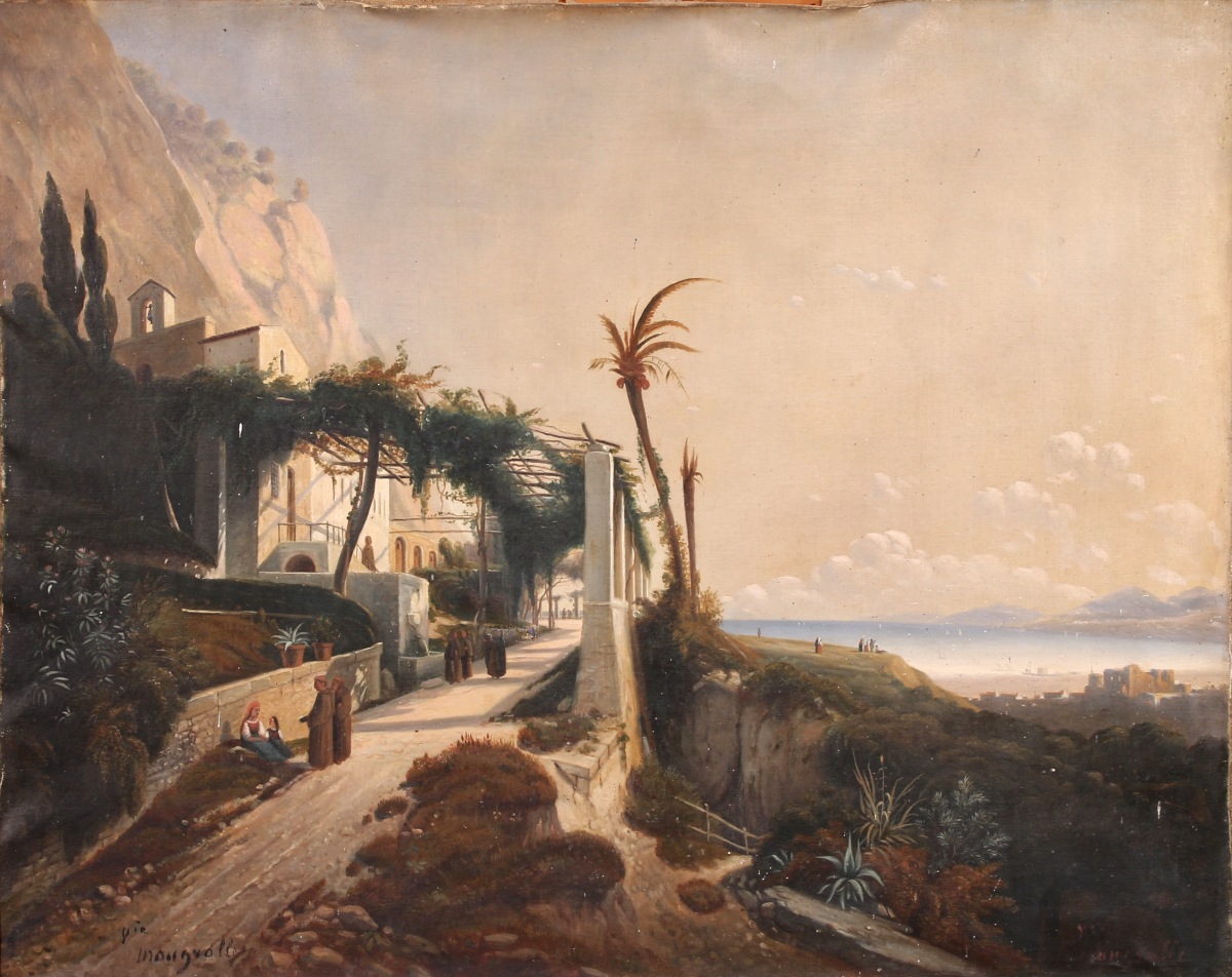 Victor MONGROLLE (1780-1847) (?)Paysage au monastère franciscain.Toile signée en bas...