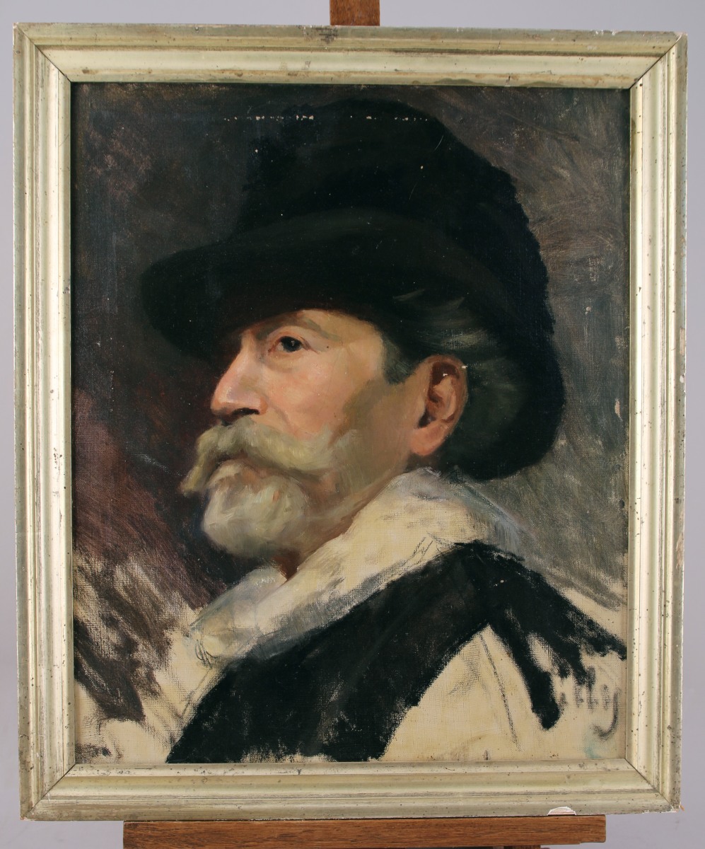 GILLY ? (XIXe)Portrait d'homme au chapeau.Toile. Haut. 46, Larg. 38...