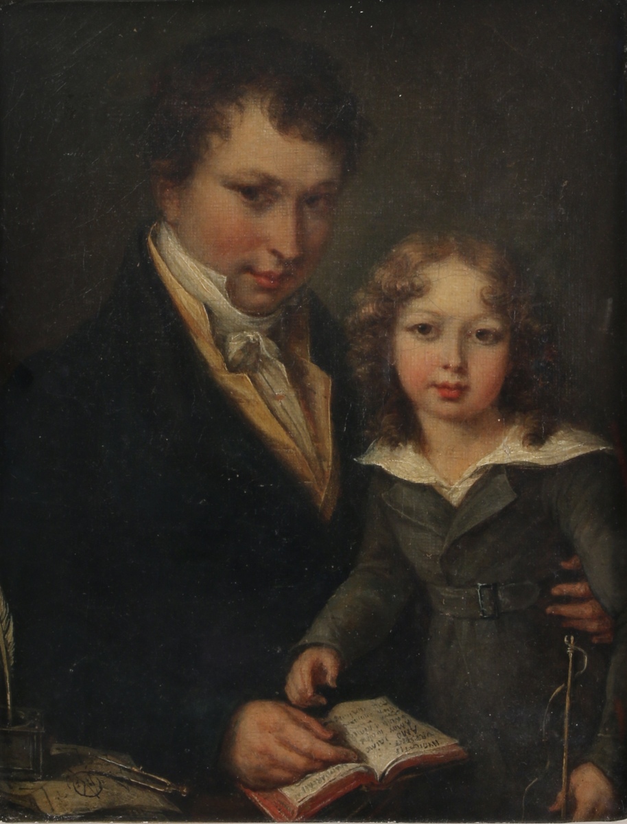 École FRANÇAISE vers 1820.Portrait d'un père et de son fils.Huile...